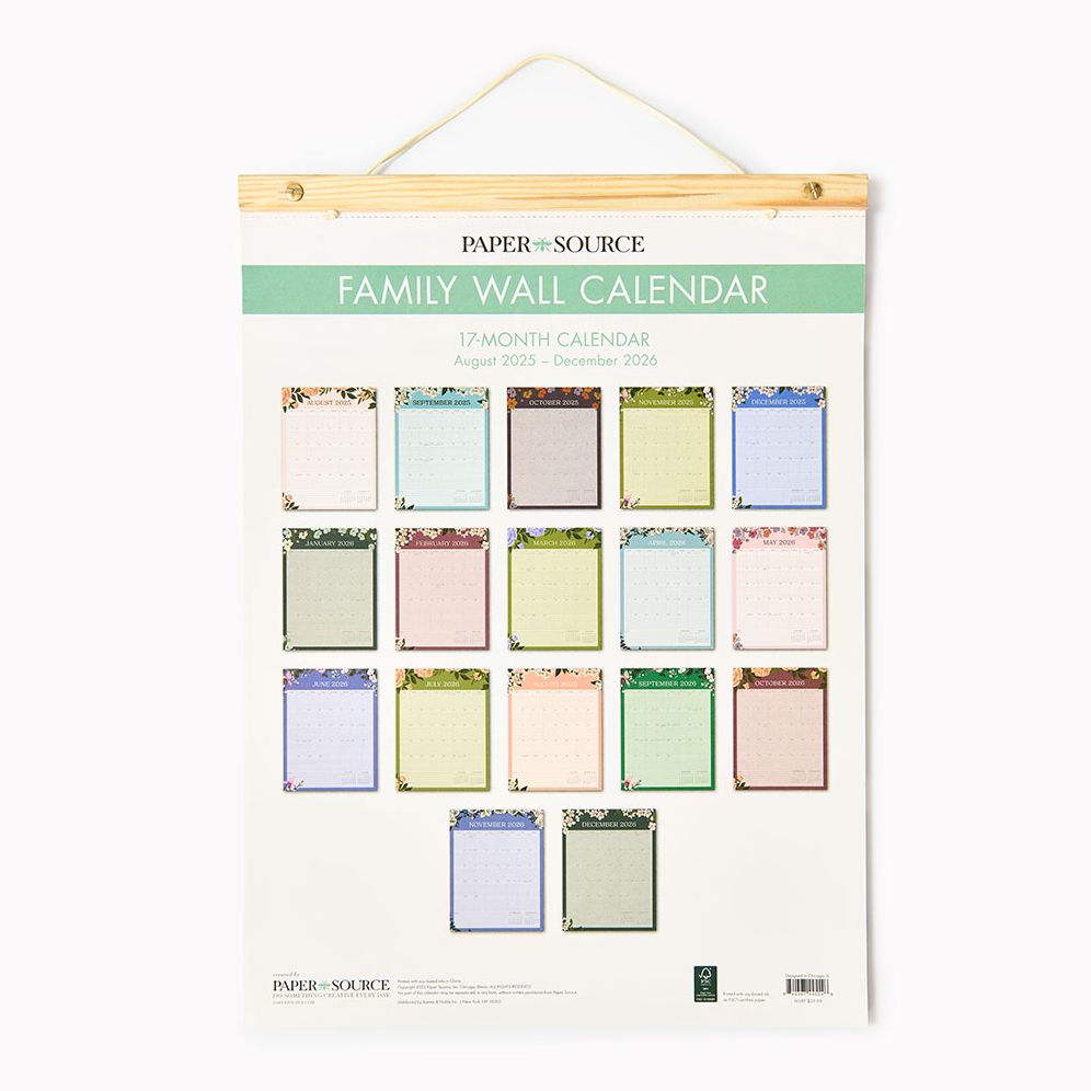 The Family Wall Calendar from Paper Source is a must-have organizational calendar that includes space for six family members’ schedules and features a sustainable bamboo hanger with a durable cord. putting a modern twist on traditional calendars. Each monthly page offers previous and next month’s references and a bonus section for notes or doodles. With easy-tear-off sheets each month. your year ahead looks bright and organized!