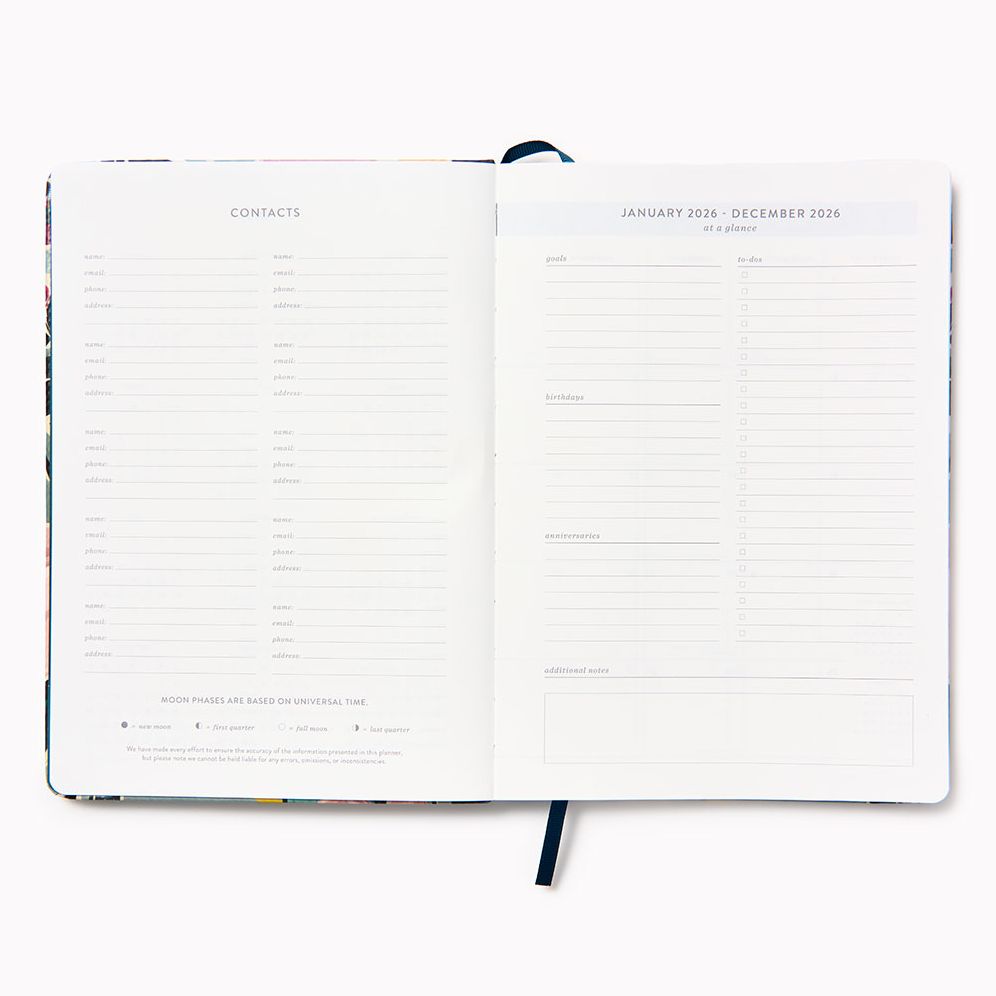 With a bold and bright floral pattern. this planner will catch everyones eye and keep you on schedule. Features gorgeous flowers on the front cover and an elastic band closure. Designed by Paper Source.