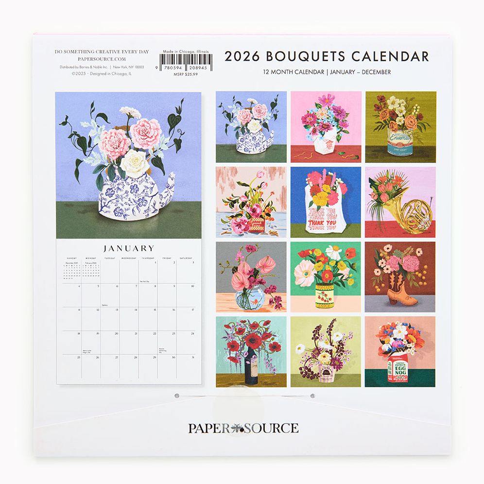 If you are not quite someone who has a green thumb. we got you. This calendar boasts 12 unique floral arrangements that will survive no matter what you do. Use the template included to upcycle the art and turn it into bookmarks. gift boxes. hang tags. and more! Designed by Paper Source