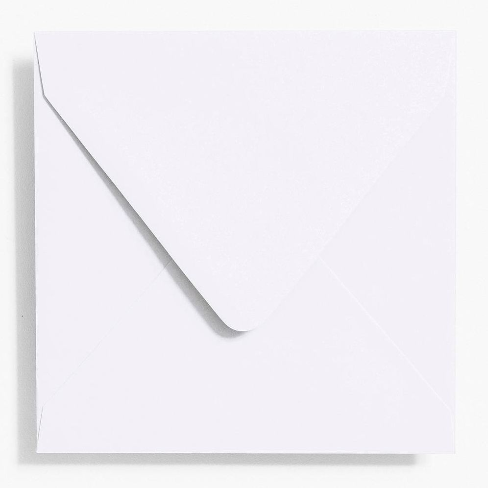 A stylish square envelope with our European inspired pointed flap in which an 8 1/2 x 11 sheet fits with just a single cut. An additional postage charge for being hip and square does apply. In a pure. pure white.