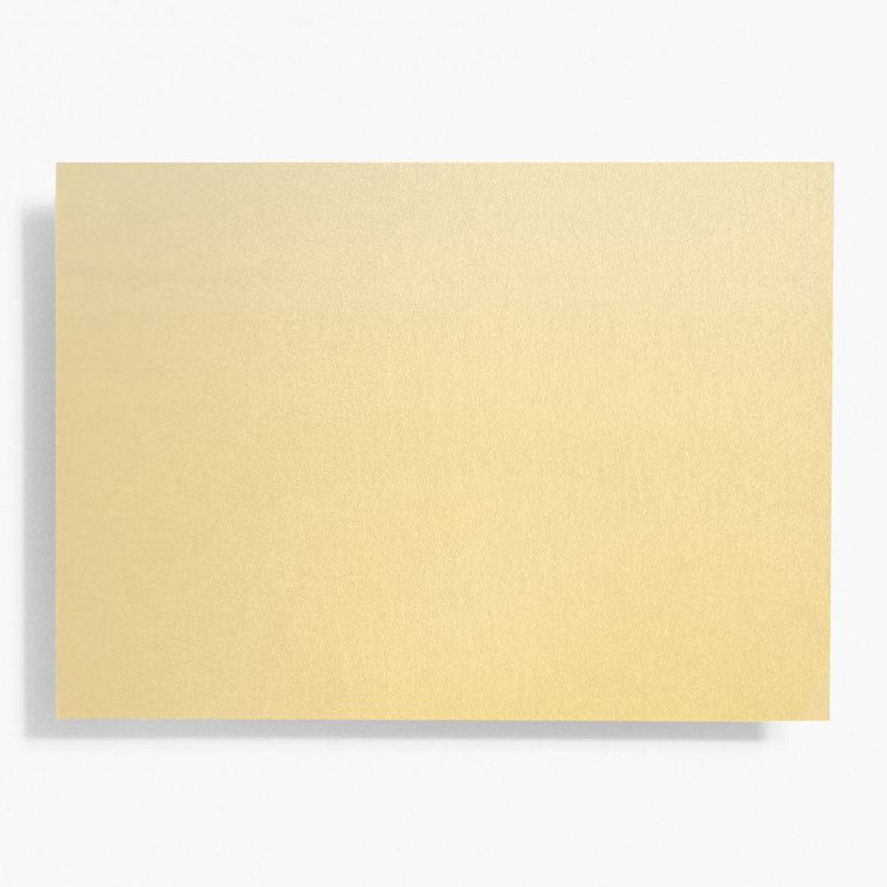 Our flat card in a cover weight fits an A6 envelope. the perfect size for a directions or menu card. In our two-sided pearlescent Shimmer Gold.