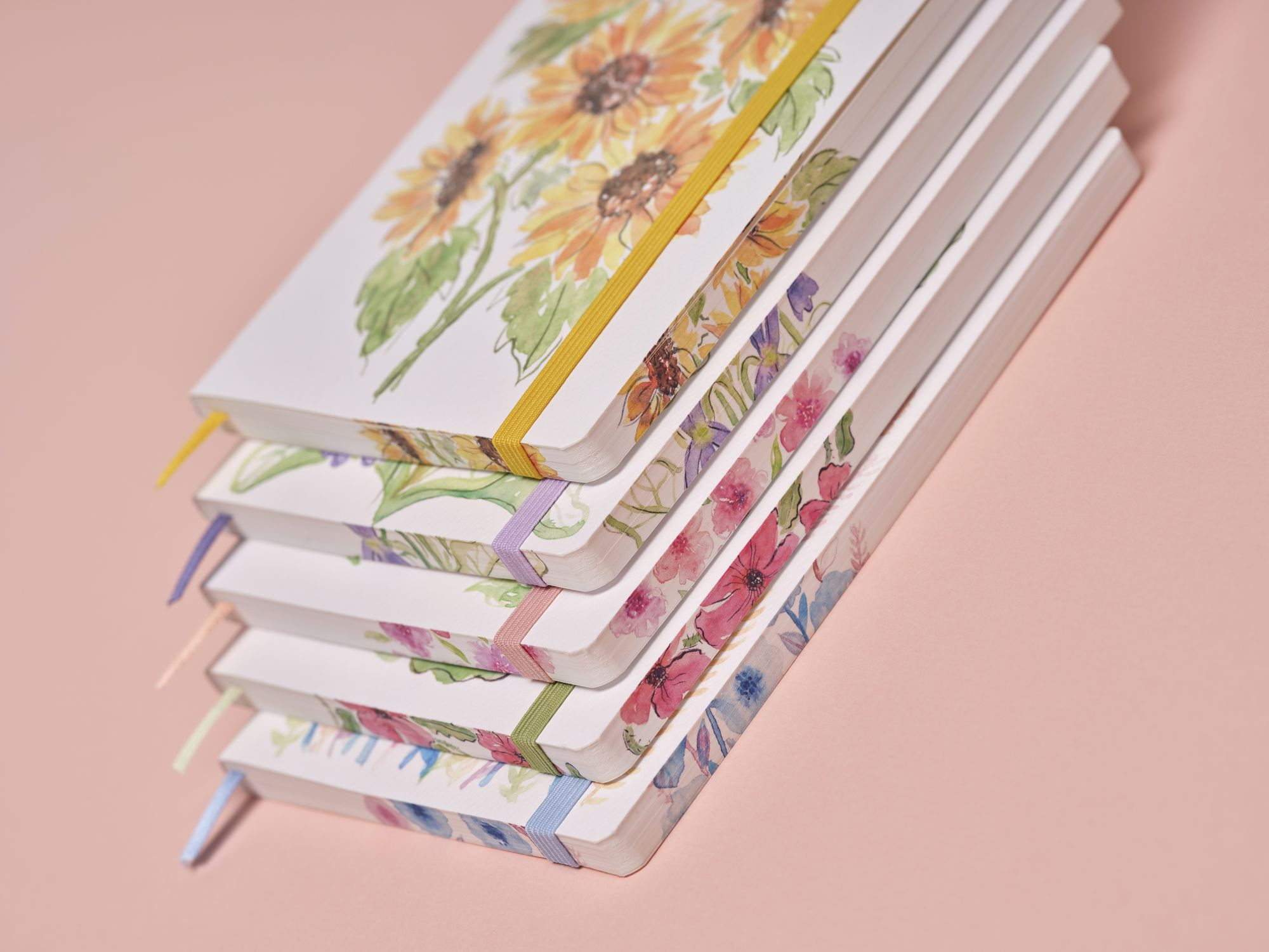Acquarello is a little gem for art lovers. With covers decorated with beautiful floral watercolors in delicate pastel tones. these notebooks capture the essence of nature in all its beauty. The inner paper. specially designed for painting. offers an ideal surface to express your creativity with brushes and colors. Made of recycled paper. it emphasizes the importance of environmental sustainability.