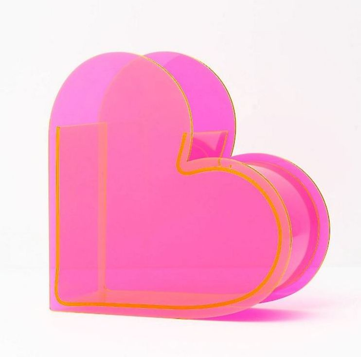 This beautiful acrylic heart shaped vase can be a great accent to any room or tabletop.
