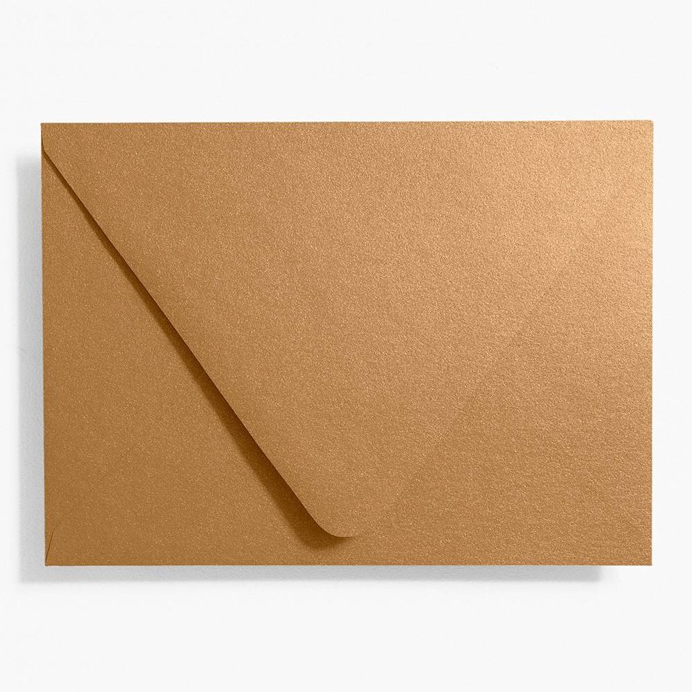 Our stylish European inspired pointed flap envelope is the perfect size for almost any correspondence. In a two sided dark rich antique gold.