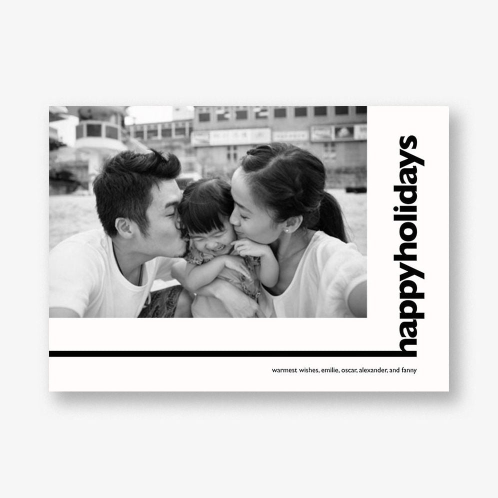 Send holiday greeting without compromising your minimal aesthetic! This holiday photo card by Paperless Post is chic and monochromatic! Add a personal photo along with a message and send it to those you love.