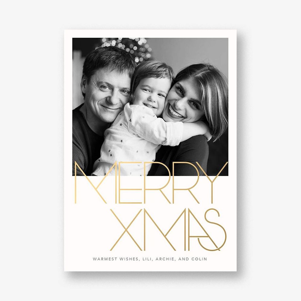 Customize this year’s holiday correspondence with family photos accompanied by the perfect foil details.The elegant foil finish on this holiday photo card by Paperless Post allows you to add a personalized touch!