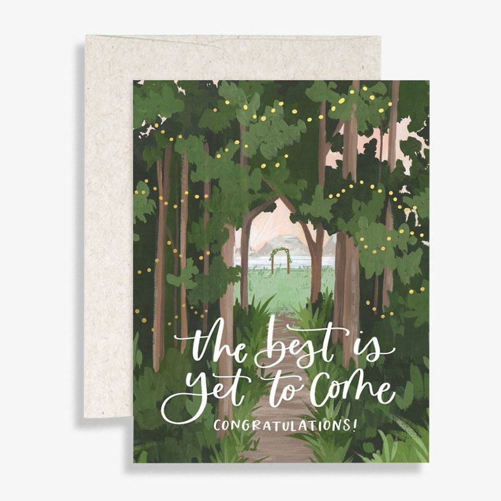 So many great times and memories ahead! Share sweet messages with the newlyweds with this card that reads. The best is yet to come. Blank inside. Paired with coordinating envelope. By 1Canoe2.
