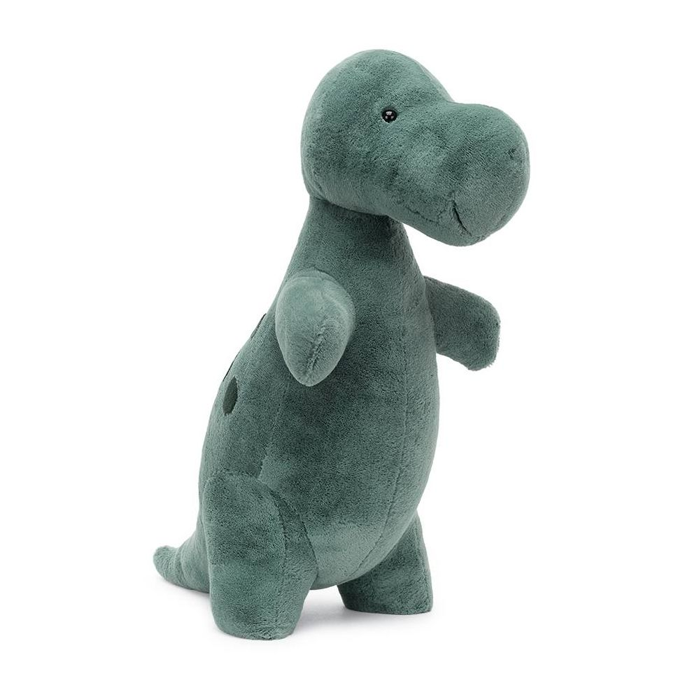 Big Spottie T-Rex stands tall on two small legs. With a long. mossy green body covered in polka dots. this prehistorical pal may have small arms. but gives great cuddles!