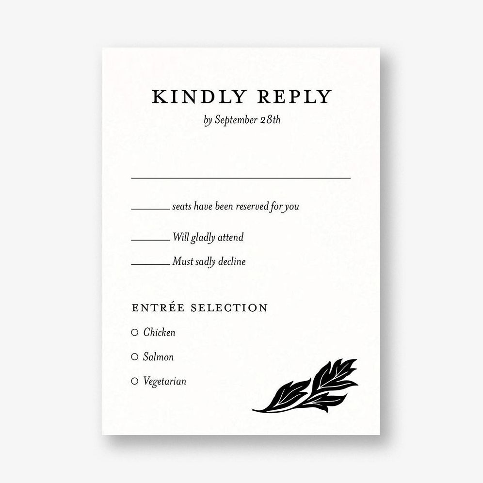 Pair these response cards with your Black and White Floral suite. or mix and match to your style from any suite in our wedding collection.