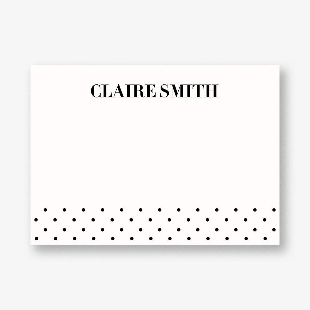 Classic black polka dots paired with a bold all caps font makes this stationery perfect for everyday use. Printed on superfine white paper. which has a smooth finish and is soft to the touch. 130# cover weight paper with 30% post consumer recycled content.