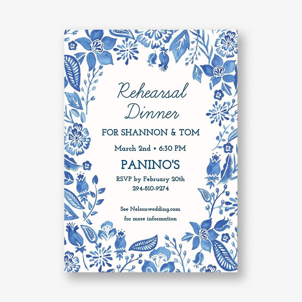 Blue Floral Rehearsal Dinner Invitation