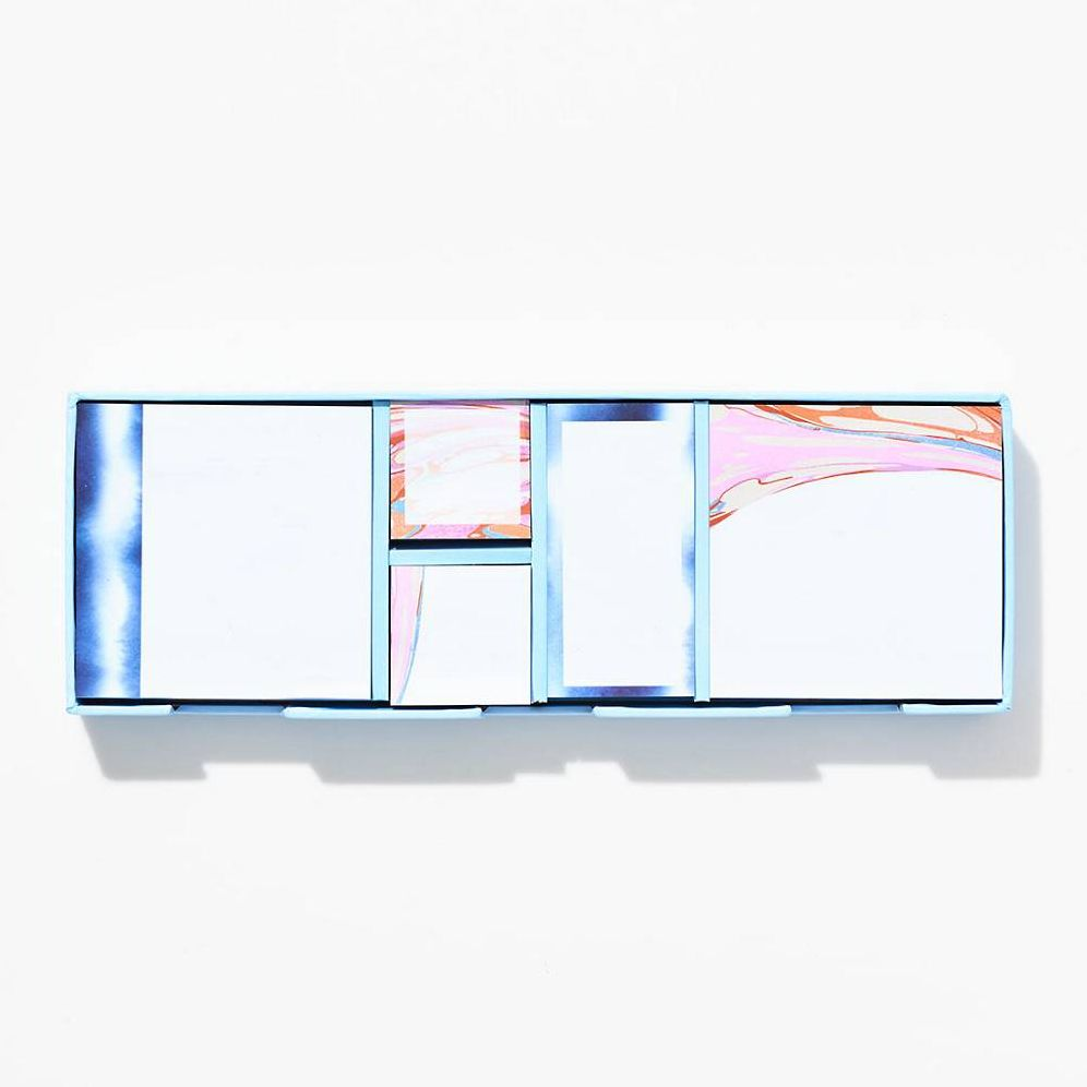 Beautifully colored boxed sticky note set. filled with multiple sizes and marble designs. Paper Source designed.