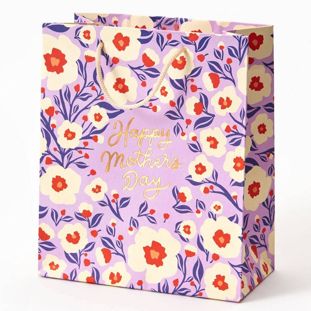 This bold floral bag is perfect for your Mother’s Day gift! Medium gift bag features Happy Mother’s Day in gold foil script.