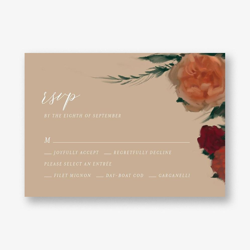 This RSVP card features romantic florals and complements the other wedding cards in the Bollongier suite. Lovingly designed by Paperless Post. Printed on Mohawk superfine white 130 lb. card stock that is soft to the touch and matches our superfine white envelopes. Paper is FSC certified and made using wind power.