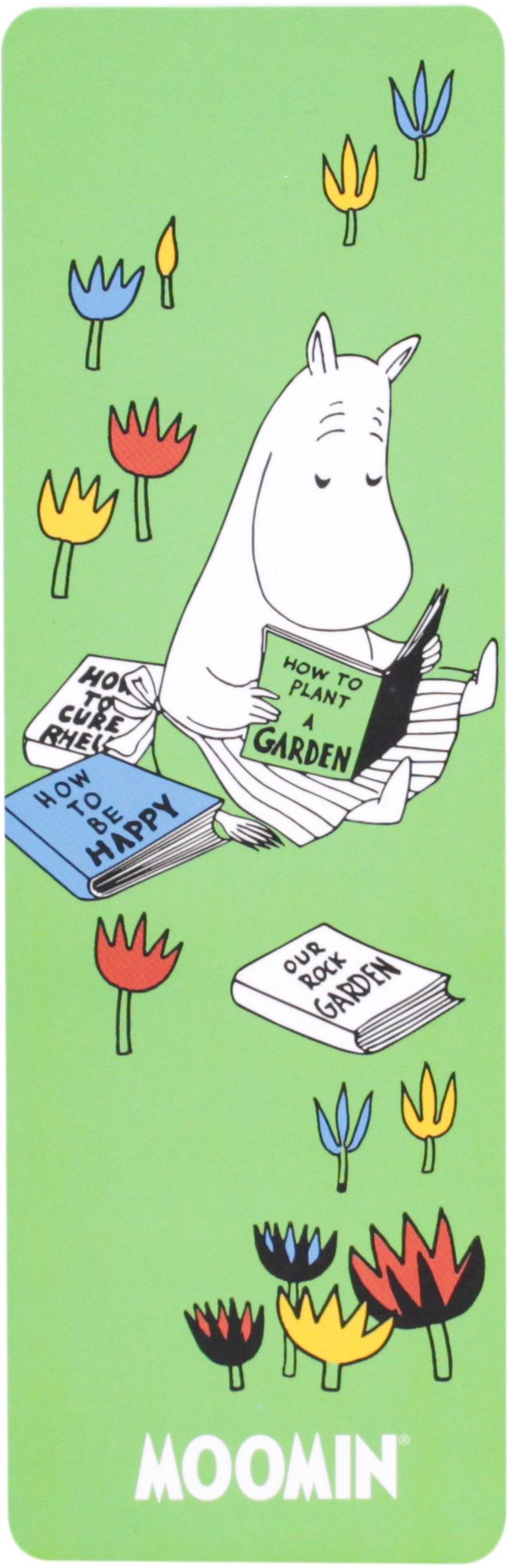 Created by Finnish artist Tove Jansson. the adventurous Moomin family live in the fairytale Moominvalley. This beautiful Moomin bookmark makes for an ideal gift for Moomin fans and bookworms alike. Featuring Moominmamma reading gardening books surrounded by flowers.