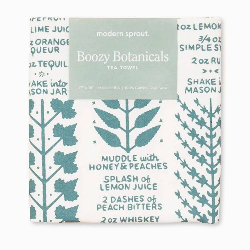Oversized. 100% cotton flour sack towel features a Scandinavian-inspired design highlighting five muddle-worthy herbs (basil. cilantro. lemon verbena. thyme. and mint) and recipes for complimentary cocktails.