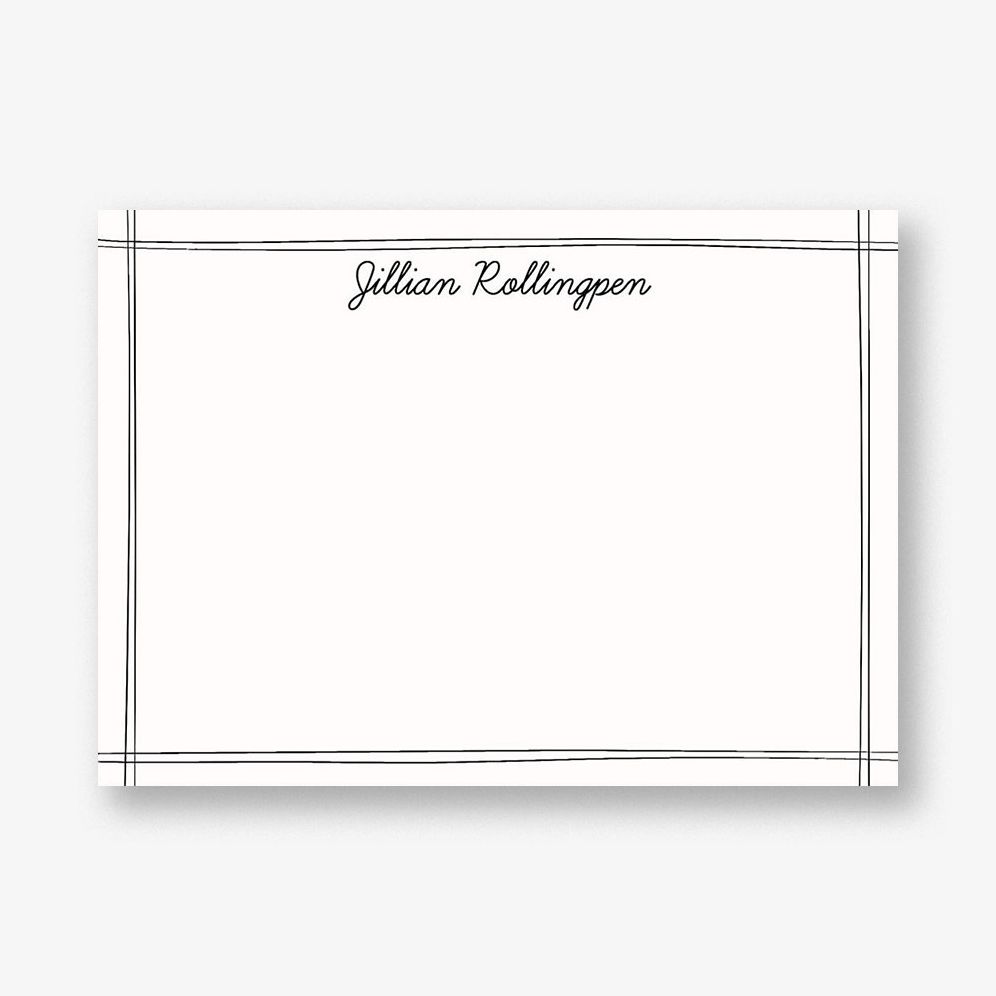 This design features your name in fun and charming script paired with a hand-drawn border to complete this simplistic but chic design. Printed on superfine white paper. which has a smooth finish and is soft to the touch. 130# cover weight paper with 30% post consumer recycled content.