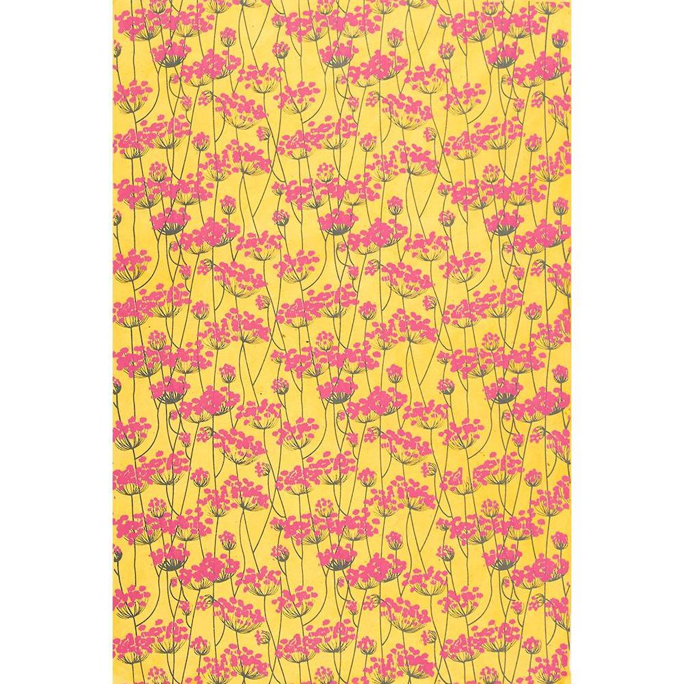 A fresh design in bright yellow and pink meets century-old Nepalese craftsmanship with this floral printed Lokta fine paper. The renewable Lokta plant’s long fibers are remarkably strong. giving Lokta paper its durability. supple feel and beautiful aesthetic. These qualities make this lovely fine paper wonderfully suitable for bookbinding. gift wrapping. or card making. And because the Lokta plant is renewable. these handmade papers are truly a green choice.