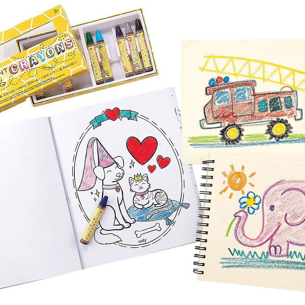 Bright. vivid and triangular shaped crayons; Brilliant Bee Crayons by Ooly have it all. When you’re coloring with Brilliant Bee Crayons you can bet that your art will stand out. The colors lay smoothly on paper and are both thick and the triangle crayons make for a great ergonomic fit. Roll away crayons are a thing of the past.
