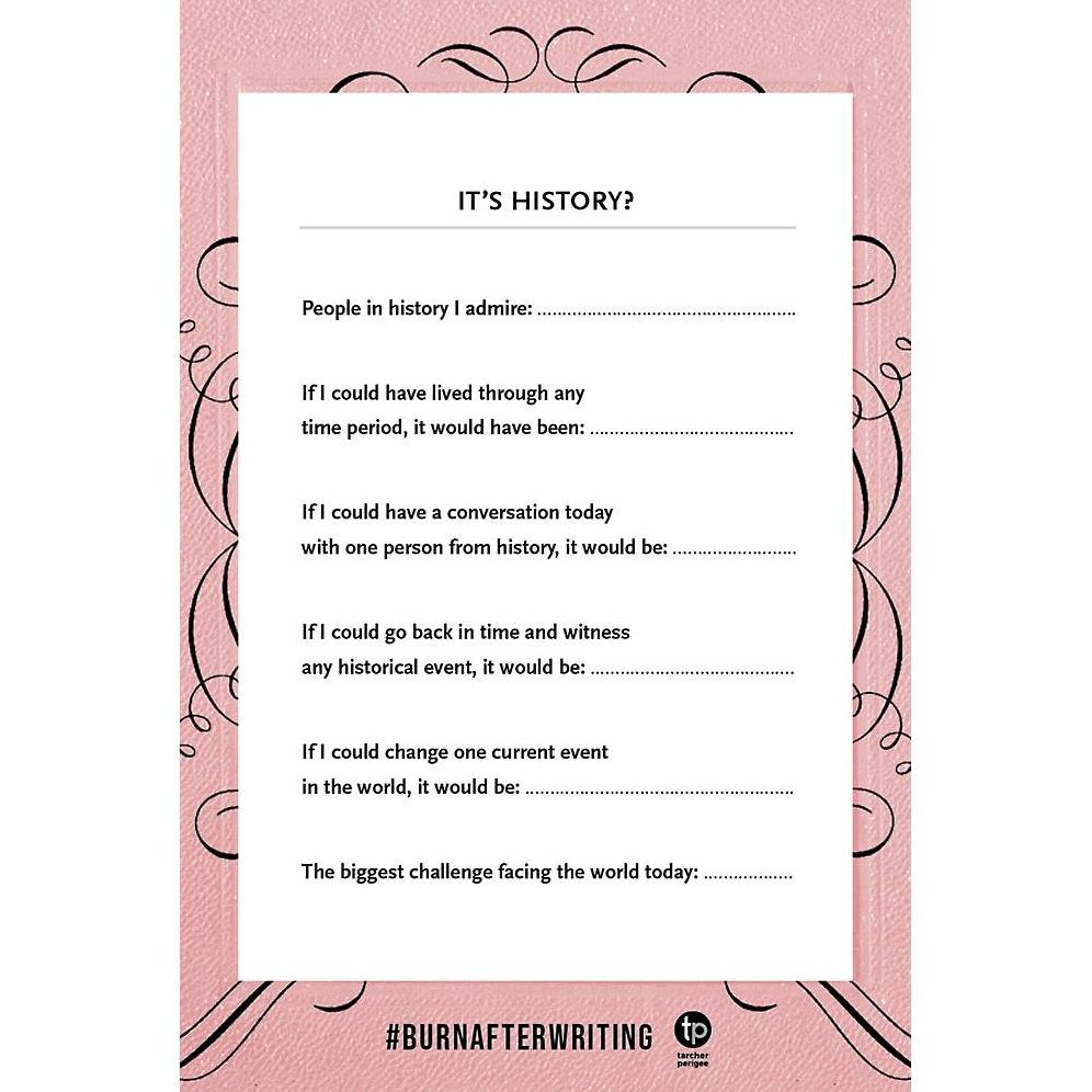 Instagram. WhatsApp. Snapchat. TikTok. VSCO. YouTube…the world has not only become one giant feed. but also one giant confessional. Burn After Writing allows you to spend less time scrolling and more time self-reflecting. Through incisive questions and thought experiments. this journal helps you learn new things while letting others go. Imagine instead of publicly declaring your feelings for others. you privately declared your feelings for yourself?