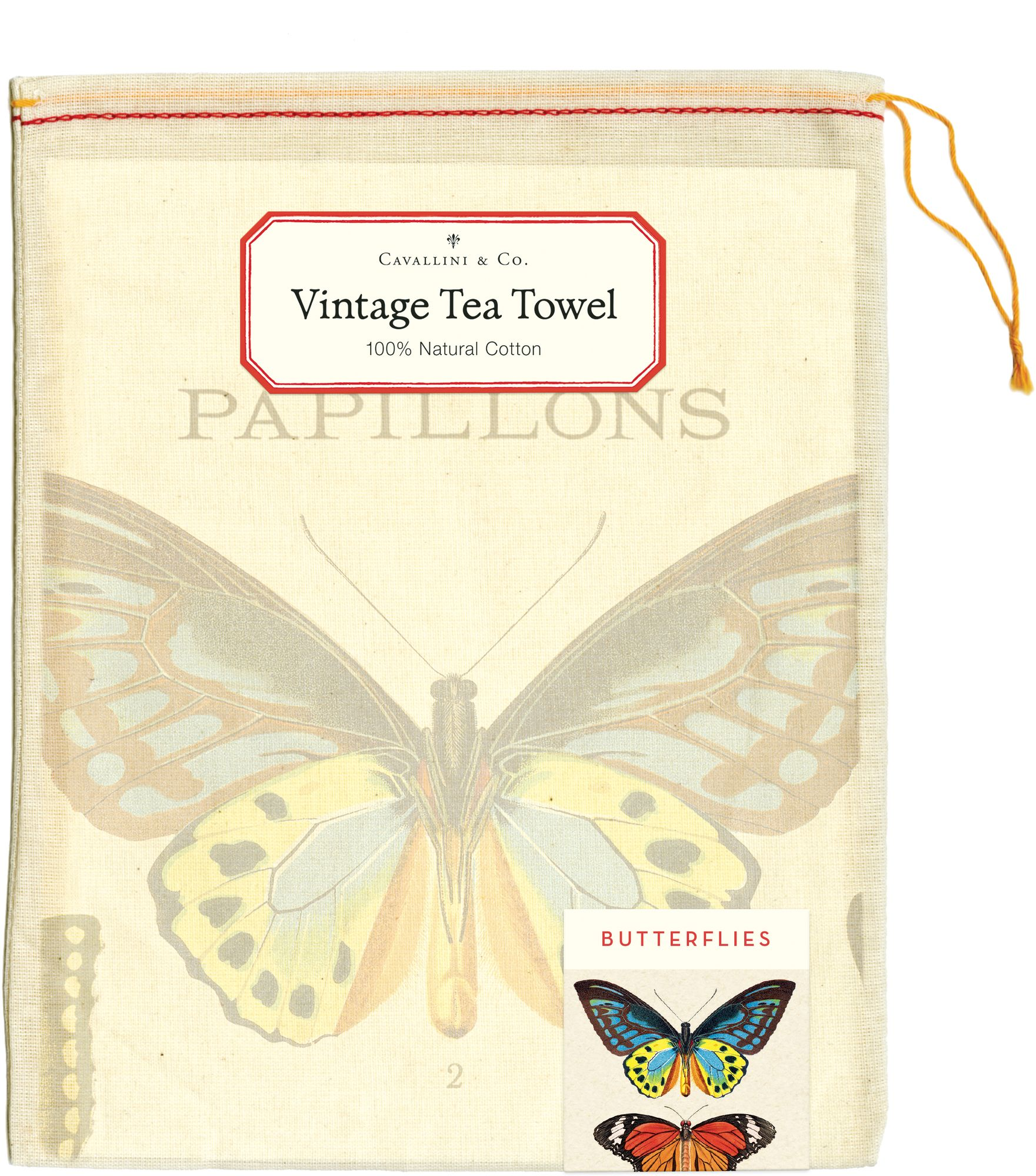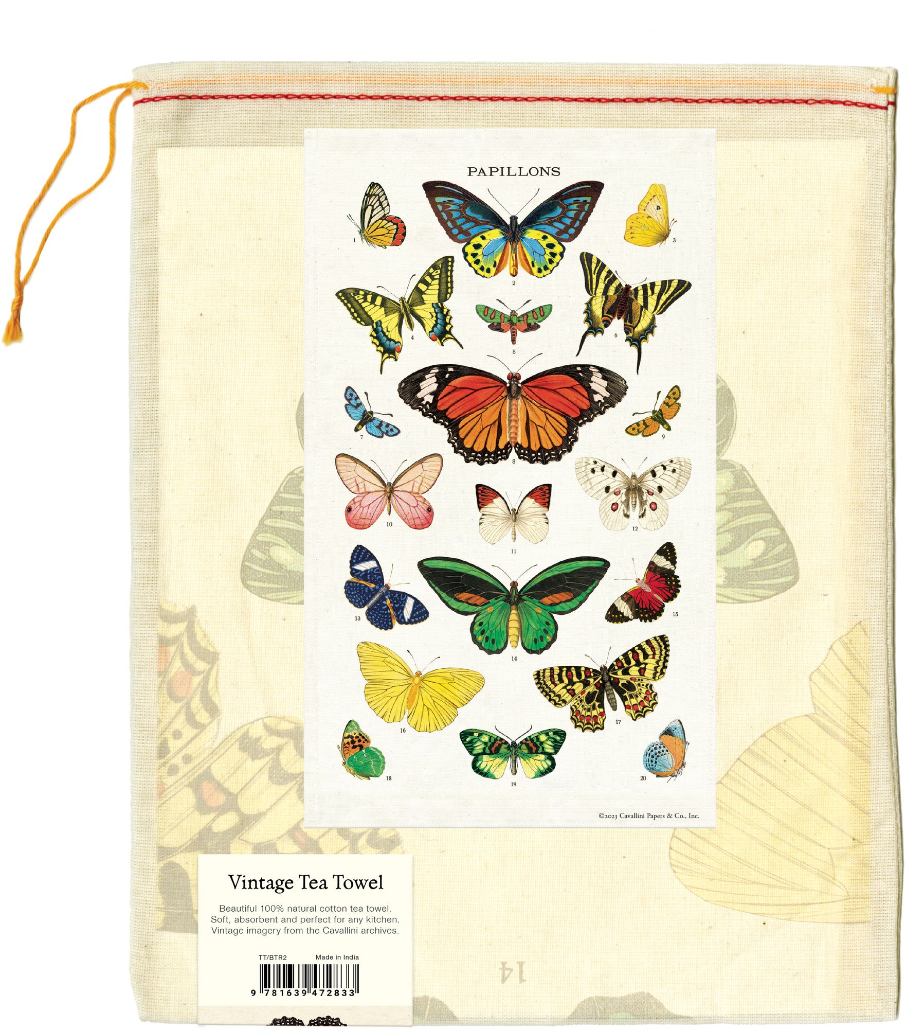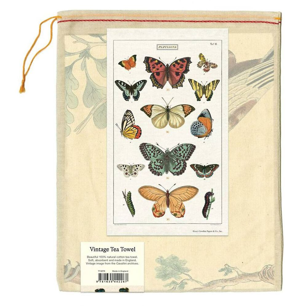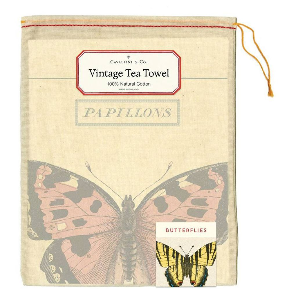 Beautiful English tea towel featuring images from the Cavallini & Co. archives.