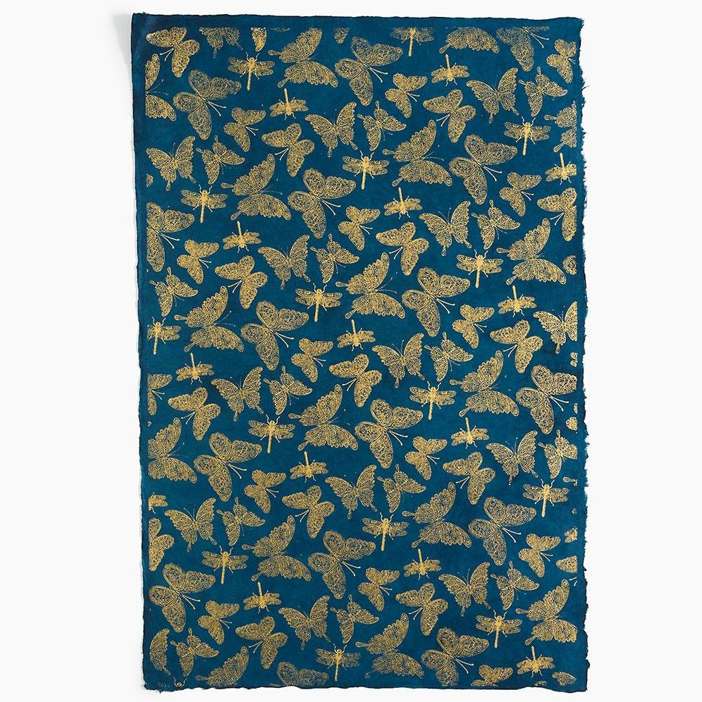 Create a unique wrap or lovely craft project featuring this magical metallic butterfly and dragonfly print. Made from the renewable fibers of the Lokta plant. this fine paper is also a green choice for your projects!