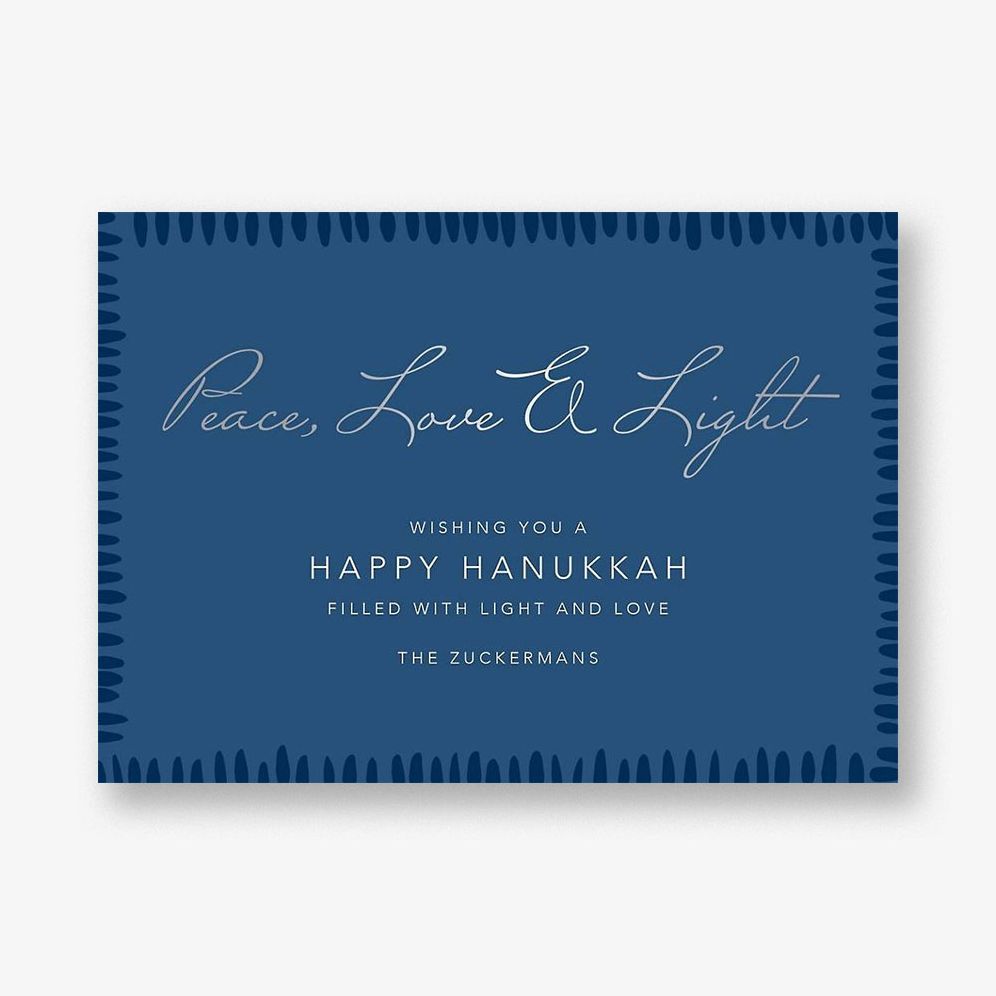 Inspired by the flickering candlelight of the menorah. send your warmest wishes for the season with this card adorned with shining foil. Proudly designed by Paper Source. Printed on Mohawk 120.0 lb Superfine Ultra White. This paper is FSC certified. with 30% post-consumer recycled content. and made using wind power. Please note: Due to the matte finish of our paper. photos may print slightly darker than they appear on your screen.