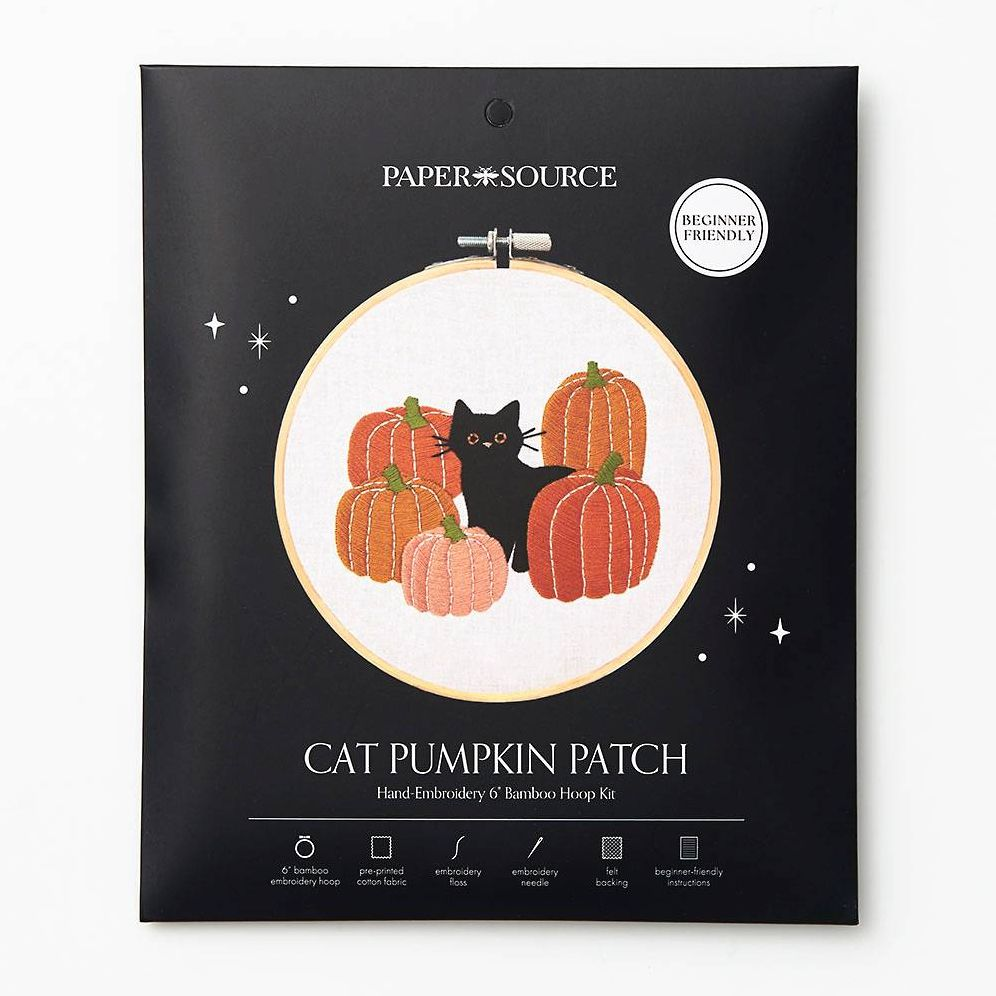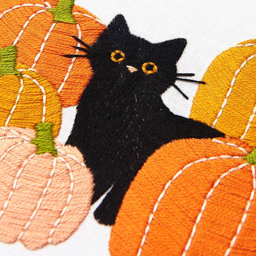 The perfect embroidery kit with an adorable black cat. This kit includes everything you need to get started. printed canvas. needle. instructions and thread!