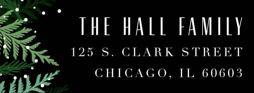 Verdant cedar branches dappled with fresh-fallen snow embellish the corner of this elegant address label. designed by Paper Source.