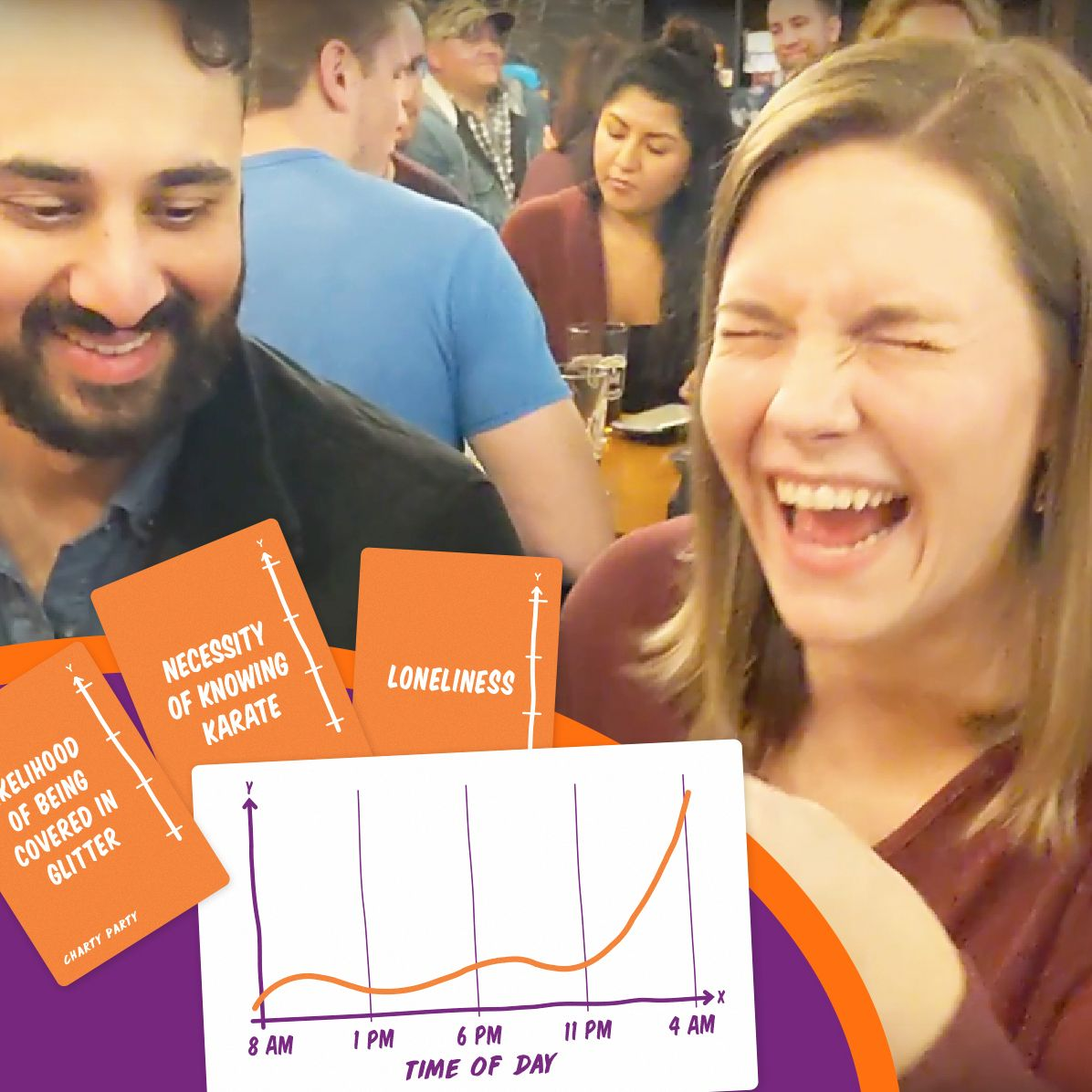 Welcome to Charty Party. the game of absurdly funny charts! Get creative as you choose the best answer to complete the y-axis on the chart!