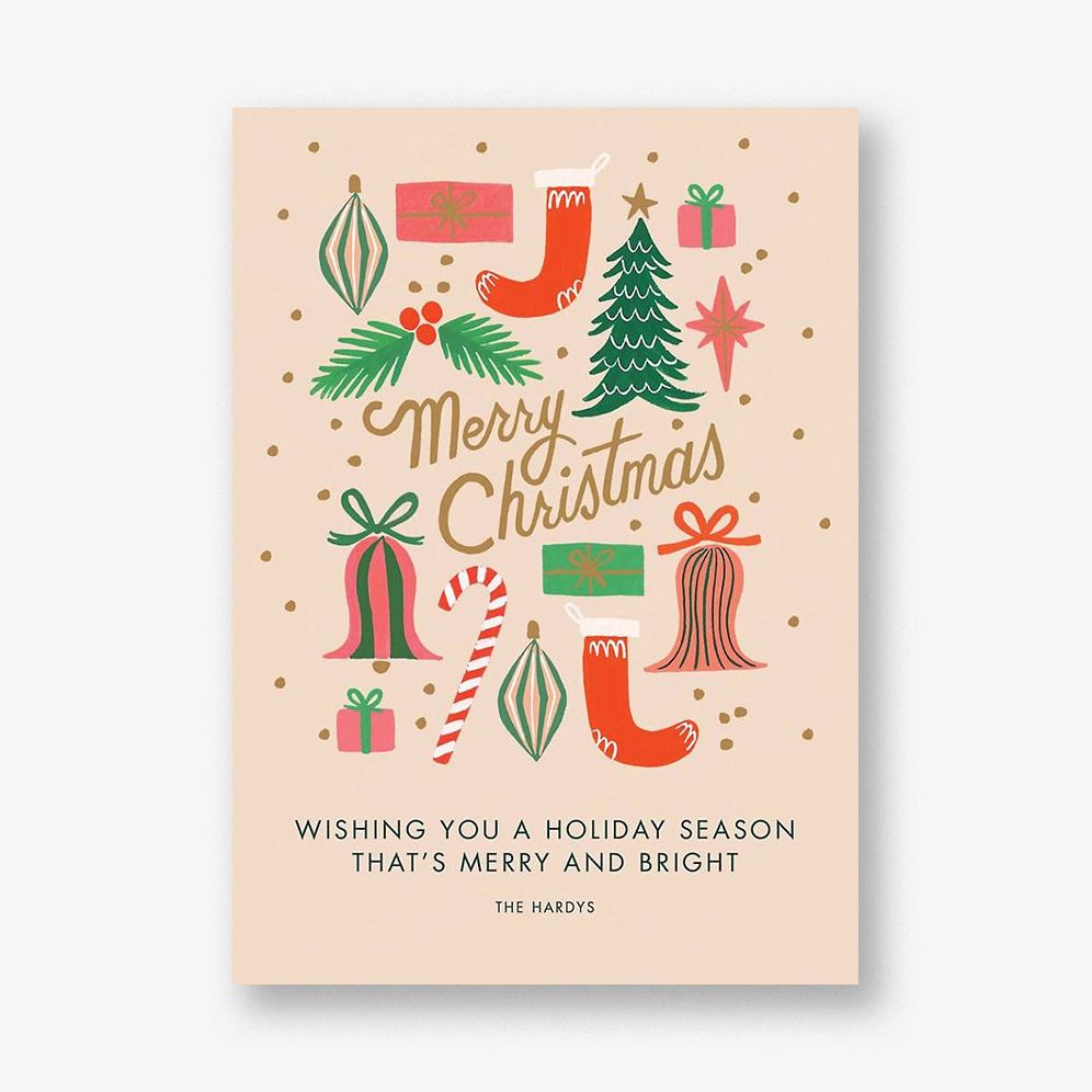 Let those you love know that you’re thinking of them with this personalized holiday card from Rifle Paper Co. by Paperless Post. This card reads Merry Christmas and can be further customized with a message from you and your family. Printed on Mohawk ultra white 120 lb. card stock that is soft to the touch and matches our superfine white envelopes. Paper is FSC certified and made using wind power.