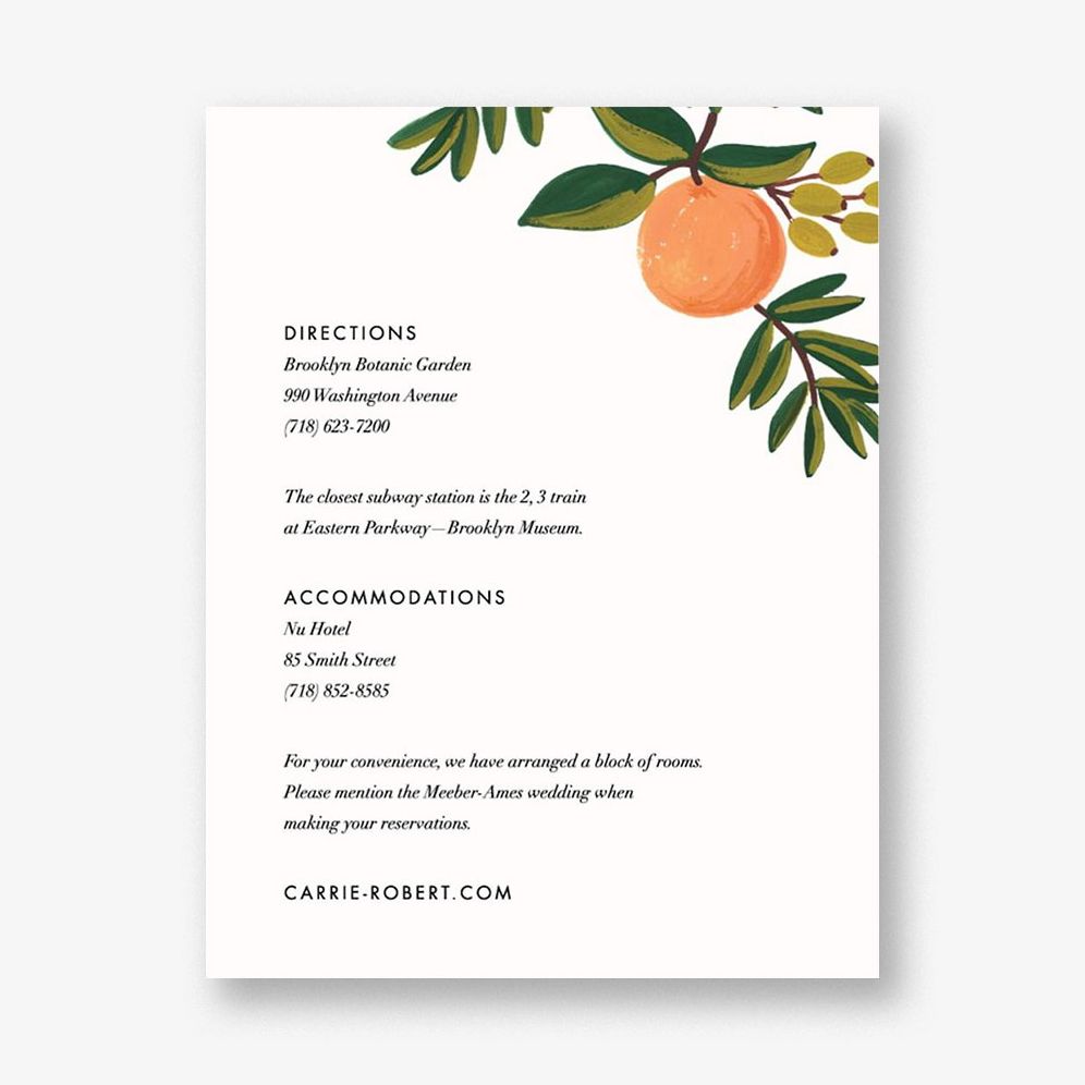 Inform your loved ones and those closest to your heart about your big day with these colorful and fun Rifle Paper Co. for Paperless Post wedding information cards. Featuring a floral border in shades of green. orange. pink and yellow on a white or teal background. Printed on Mohawk superfine white 130 lb. card stock that is soft to the touch and matches our superfine white envelopes. Paper is FSC certified and made using wind power.