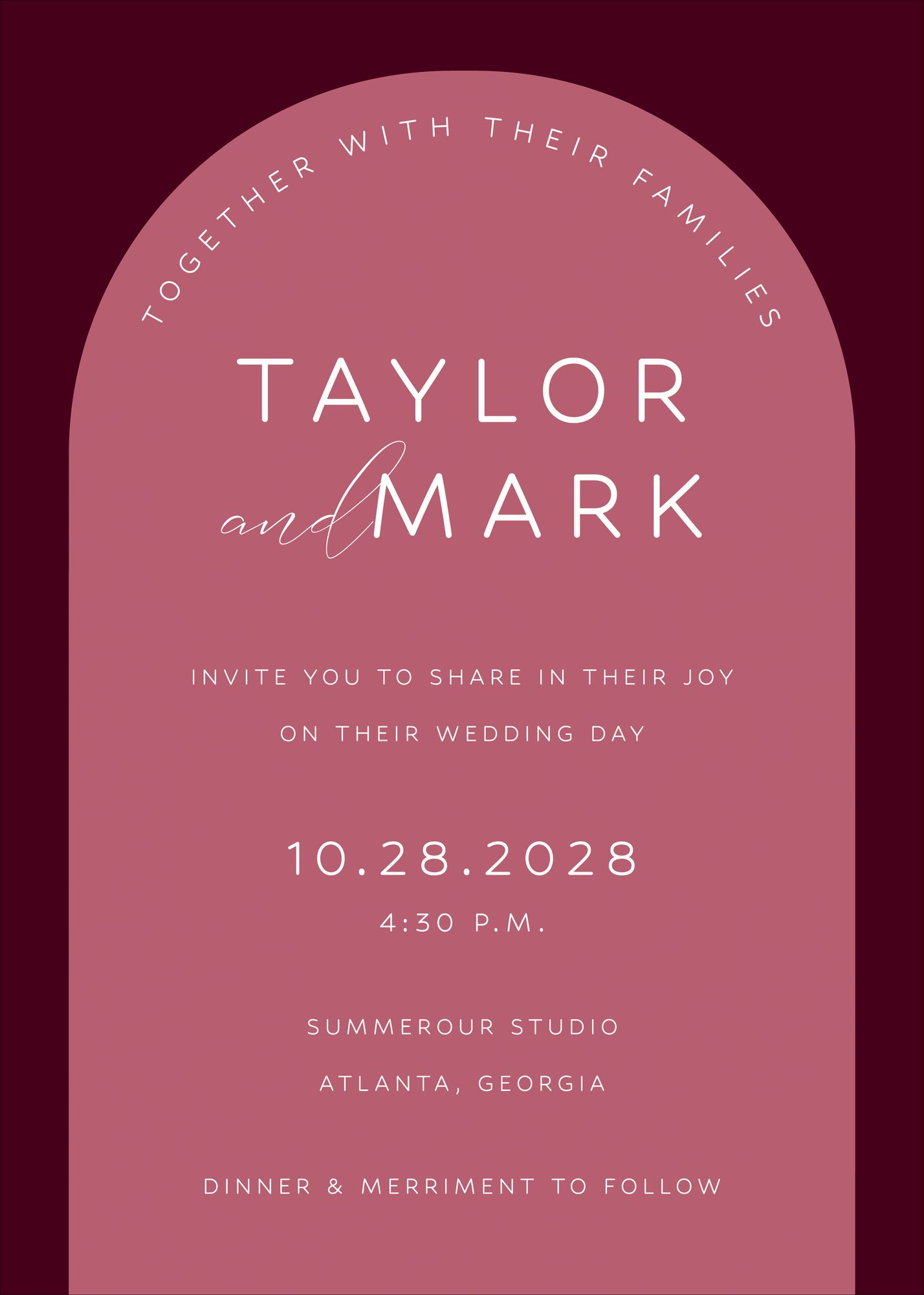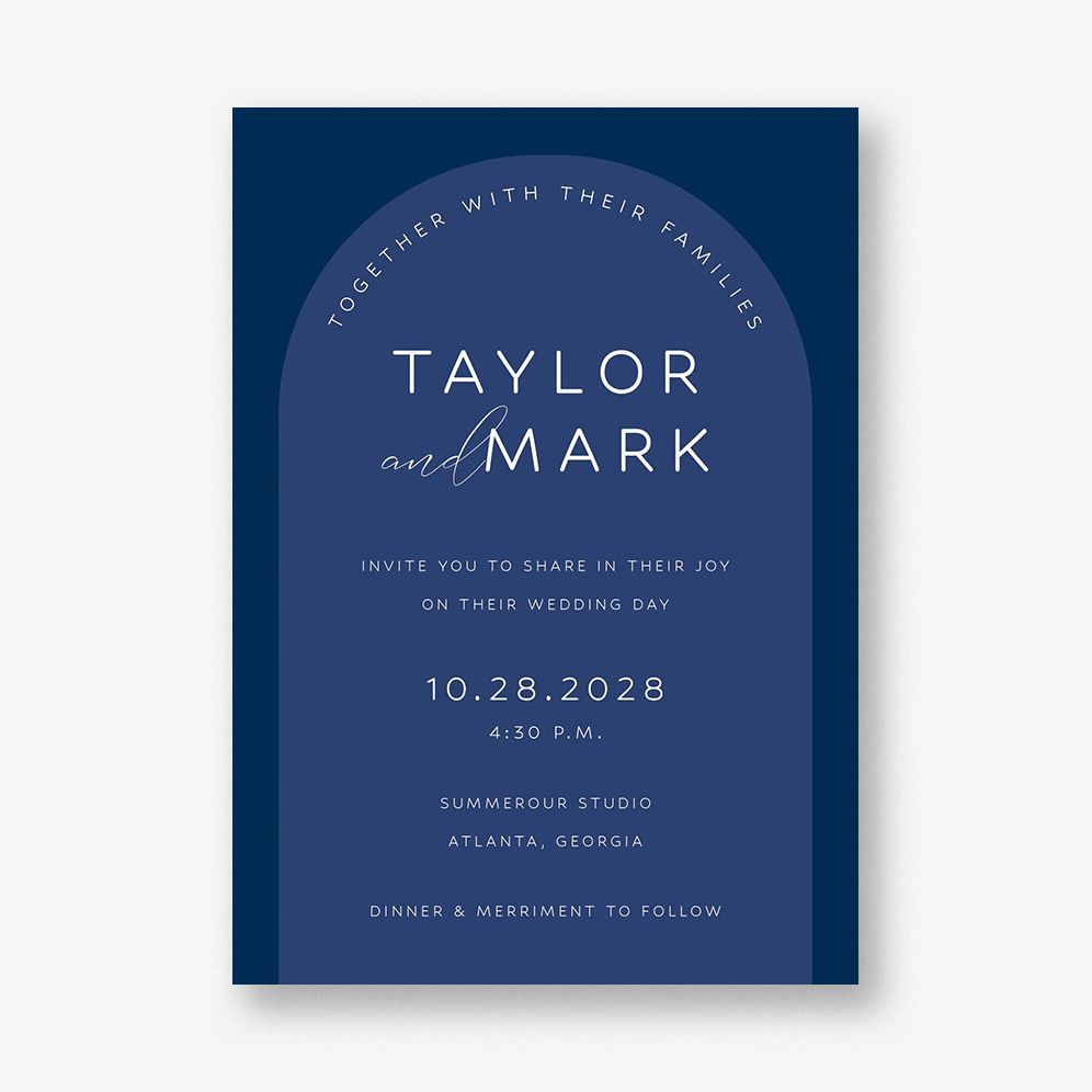 For those who love color. these invitations feature rich monochromatic tones in a modern architectural arch.