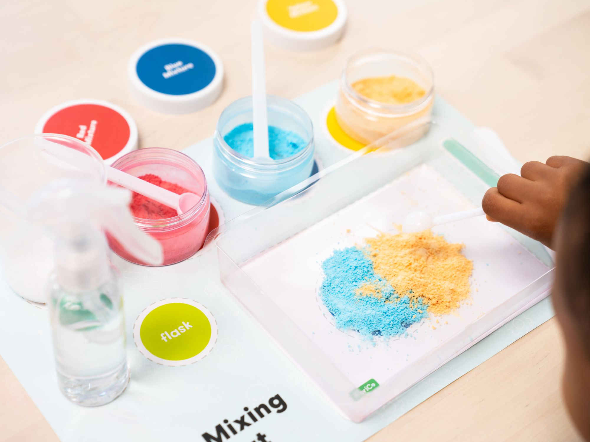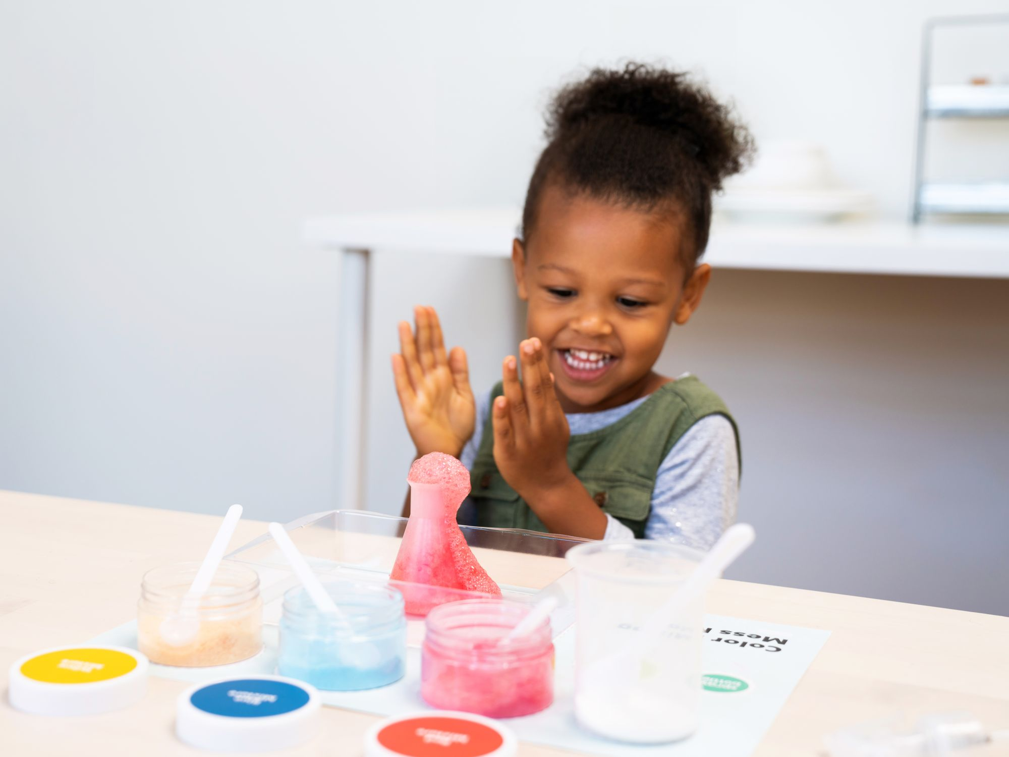 Add a little color and a whole lot of science to your day! Learn about the scientific method before setting up your own chemistry lab and get ready to experiment. Mix up a bubbly chemical reaction. combine colors and watch them swirl together. and even use household ingredients to explore more reactions!