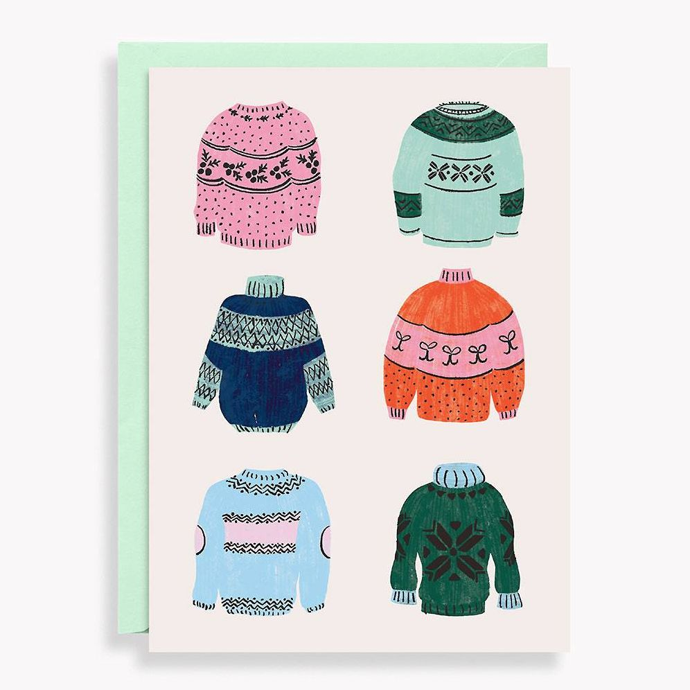 There’s nothing ugly about these sweaters! Send love this season with this cute card. Inside sentiment reads. Wishing you the warmest and coziest holiday season! Folded card. Blank inside. Paired with matching envelope. Designed by Paper Source.