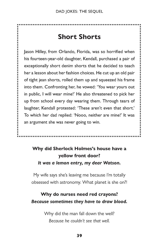 Do you think your jokes are hilarious. without fail? Ever thought something was sidesplittingly funny. only to have the rest of your family look at you with pity and disdain? It probably means that you’ve succumbed to the embarrassing. ill-advised things all Dads say and do ?C the things you swore you’d never do! ?C you’ve fallen for Dad-isms. In this hilarious look at the rite of passage that almost all dads go through. you’ll find embarrassing anecdotes and true stories. cringeworthy jokes. sayings. quotes. and all manner of quirky nonsense that dads come up with to keep you (but mostly him) amused. From excruciating things dads say at weddings to the cheesy phrases that make you sigh but him guffaw. from dad dancing to the crazy things they save up for the most inappropriate moments ?? these dad-isms are so bad they’re almost good.