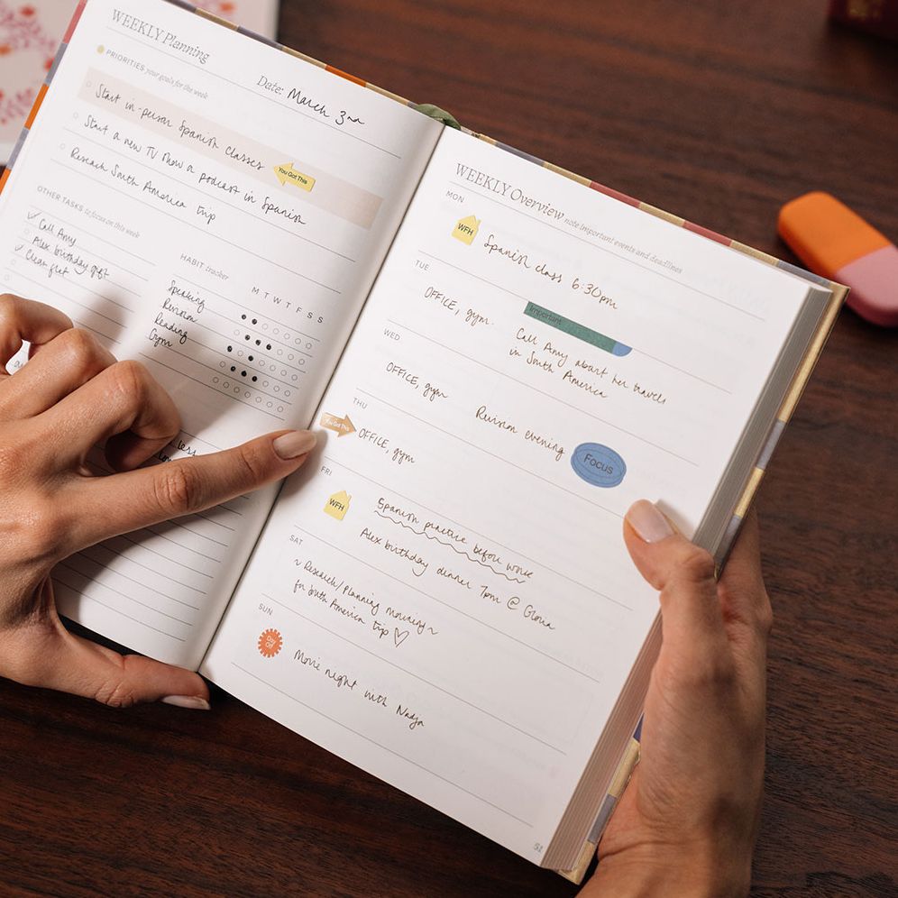 Go get your goals with Papier’s Productivity Planner. Led by four productivity pillars. you’ll develop a personalized path to plan. track and achieve whatever you want to do (hit a career goal. finish your kitchen redesign. run a half marathon. get better at baking). The tracking tools. inspiring articles. prompts and undated planning pages act as your accountability partner. to harness your focus and help you feel closer to your dreams in 16 weeks.