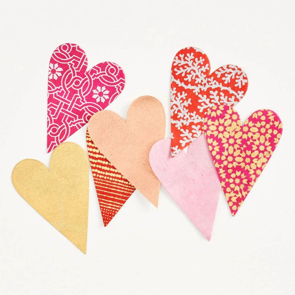 These beautiful fine papers have been handcrafted into hearts and can be used for multiple projects. including DIY cards. garlands. and table scatter. Each pack contains 25 hearts in assorted colors and patterns.