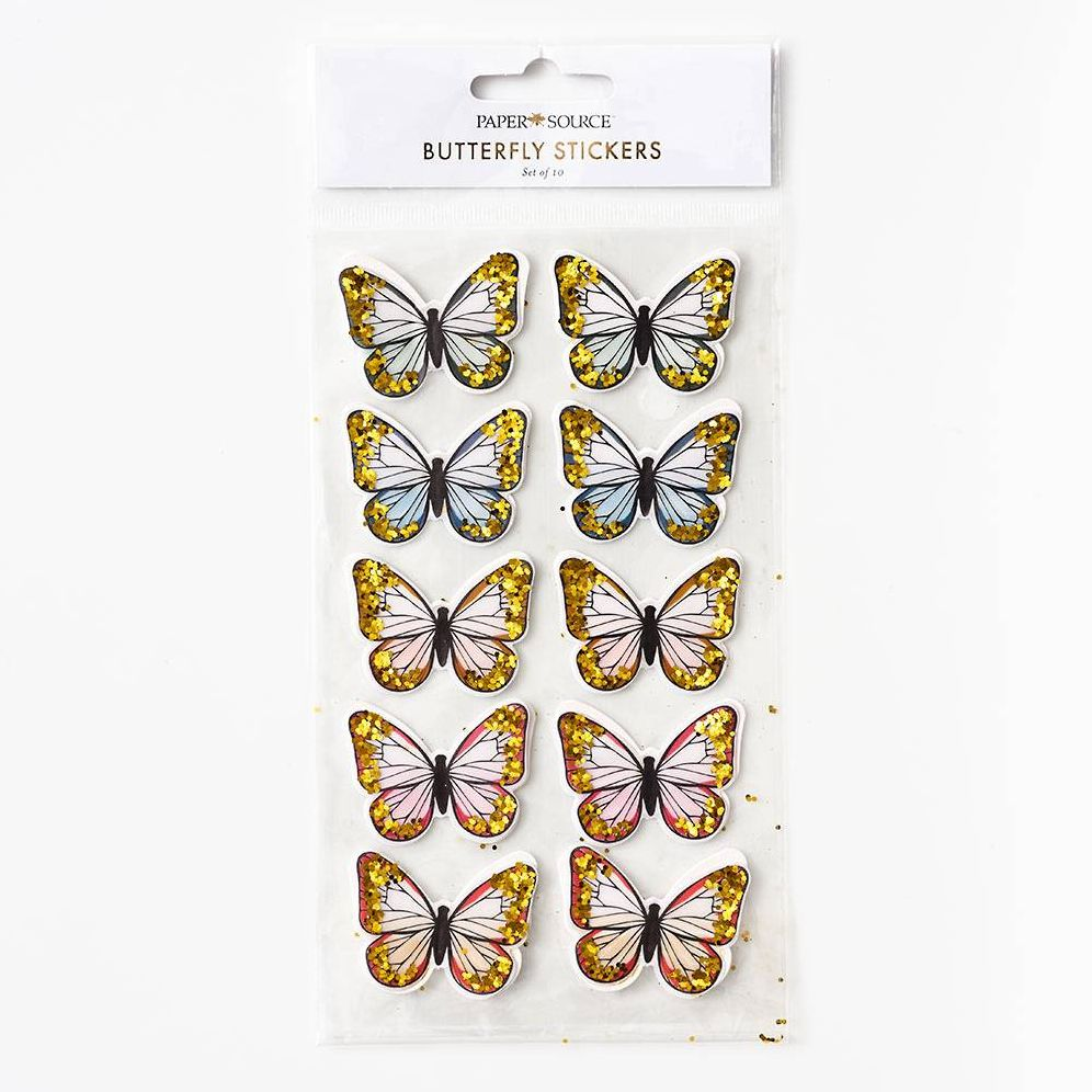 Make your next project float off the page with these lovely butterfly stickers. Featuring detail butterfly wings and gold glitter. these stickers will make at journal. planner. card. or scrapbook pop!