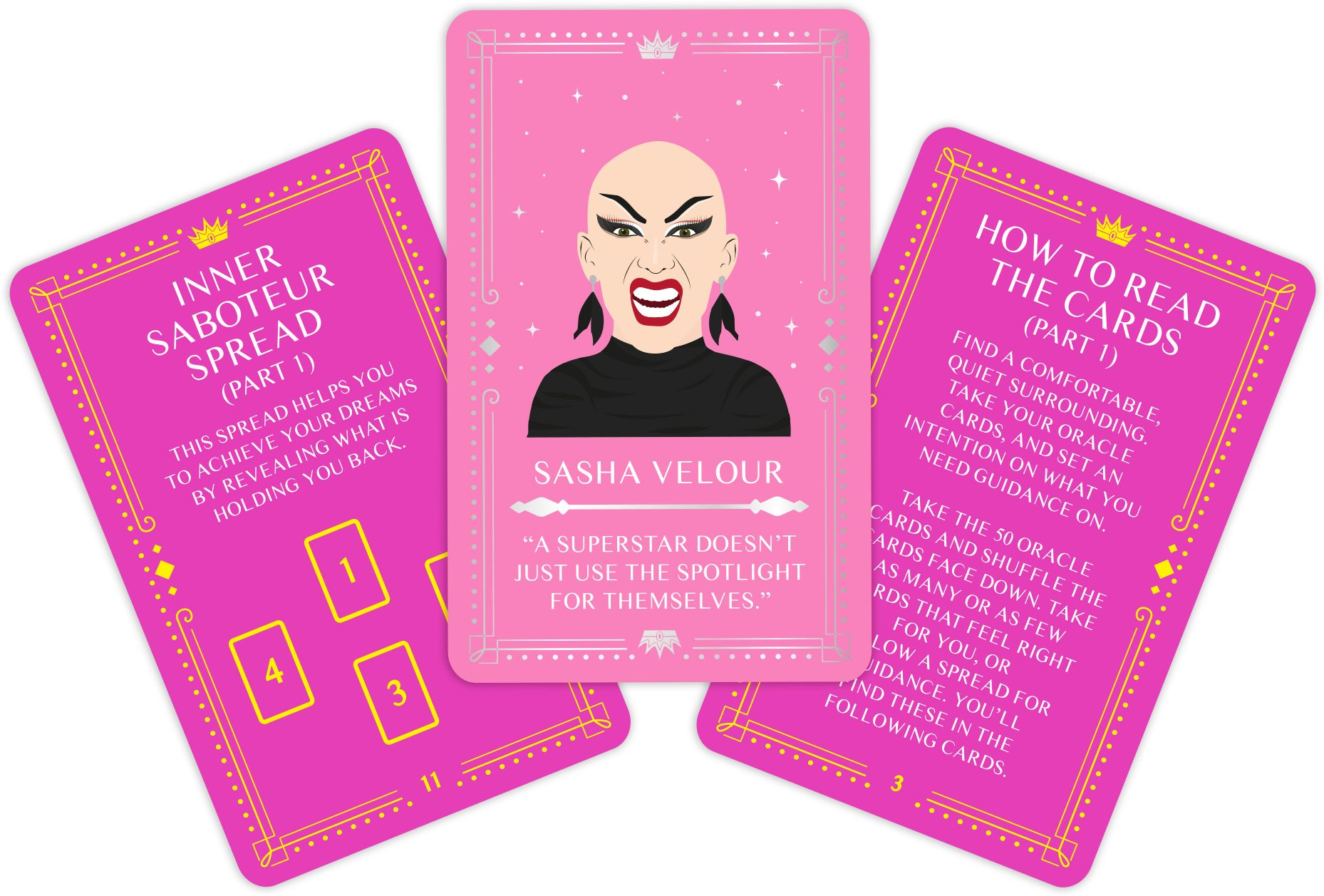 Ready to slay at life like the Queen you are? Use the power of the drag royalty to solve your problems and guide your life with these oracle cards. teaching you the true ways of a Queen. The rest will be herstory.