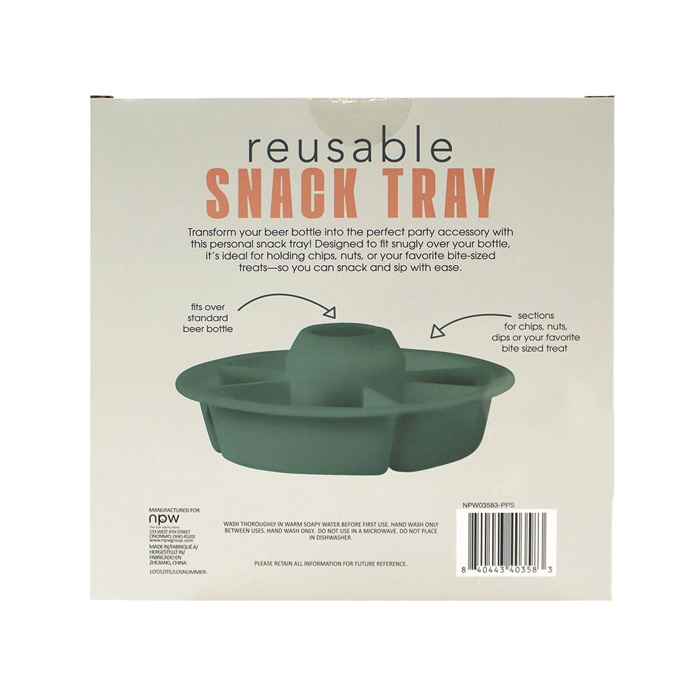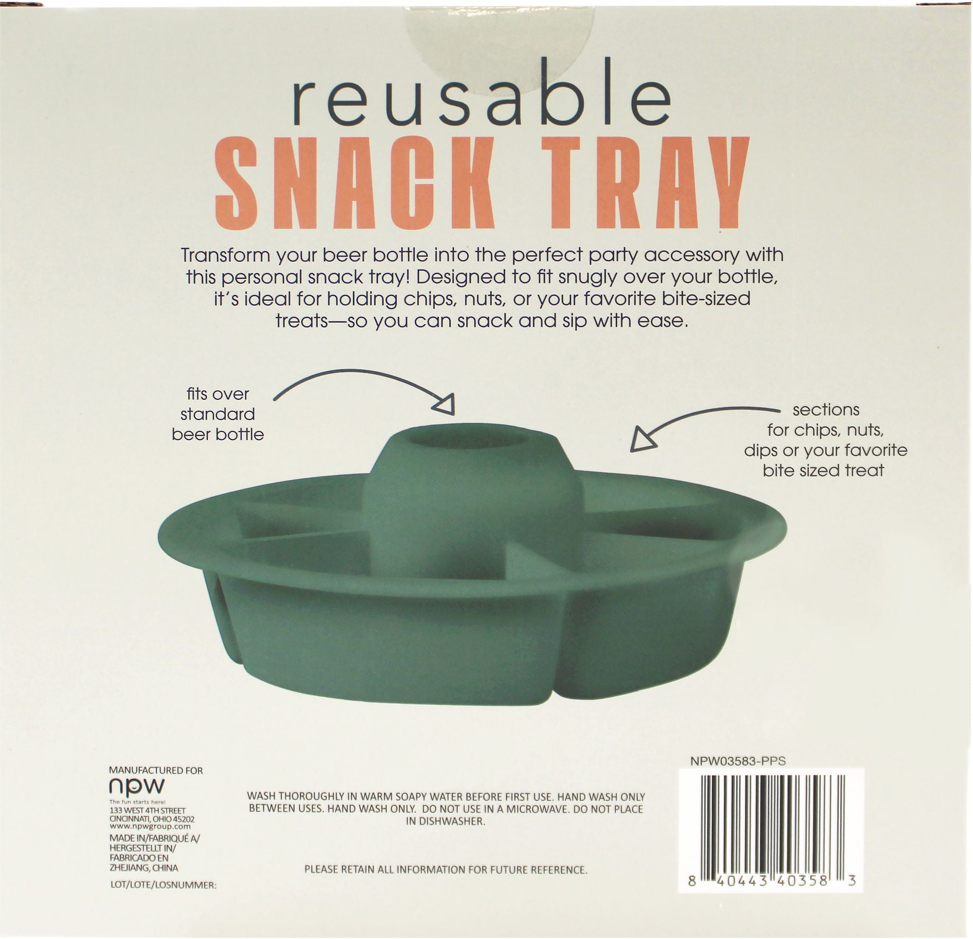 Transform your beer bottle into the perfect party accessory with this personal snack tray. Designed to fit snugly over your bottle. its ideal for holding chips. nuts or your favorite bite-sized treats – so you can snack and sip with ease. Hand wash only.