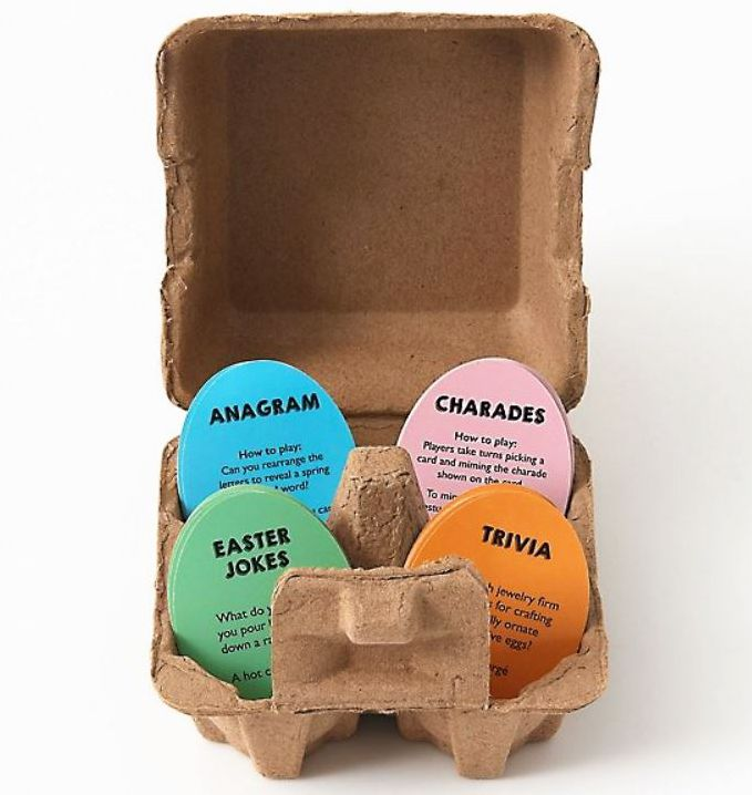 This Easter Fun Pack can make a great Easter Basket gift and includes 25 anagram cards. 25 trivia cards. 25 charade cards and 25 joke cards. From Professor Puzzle.