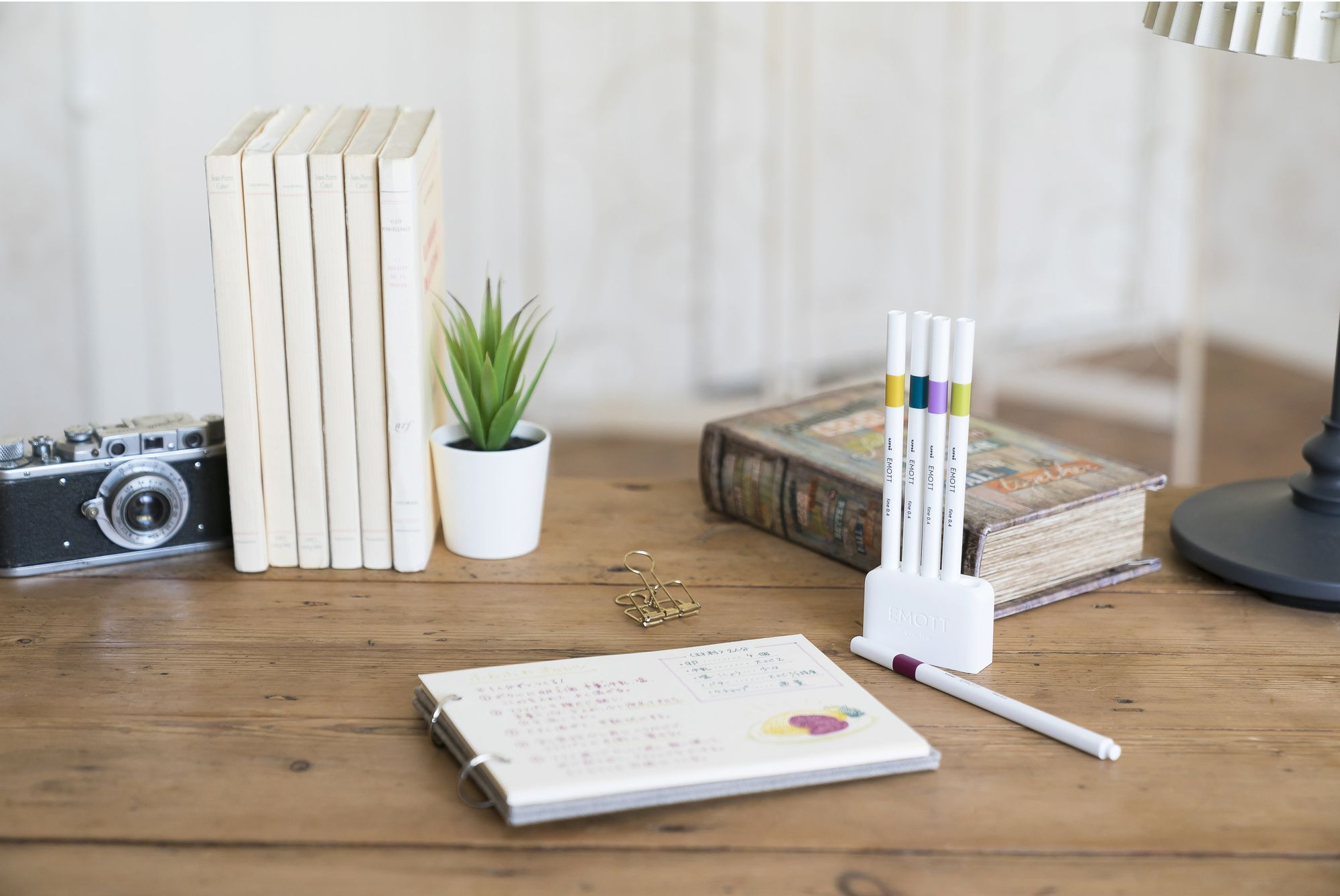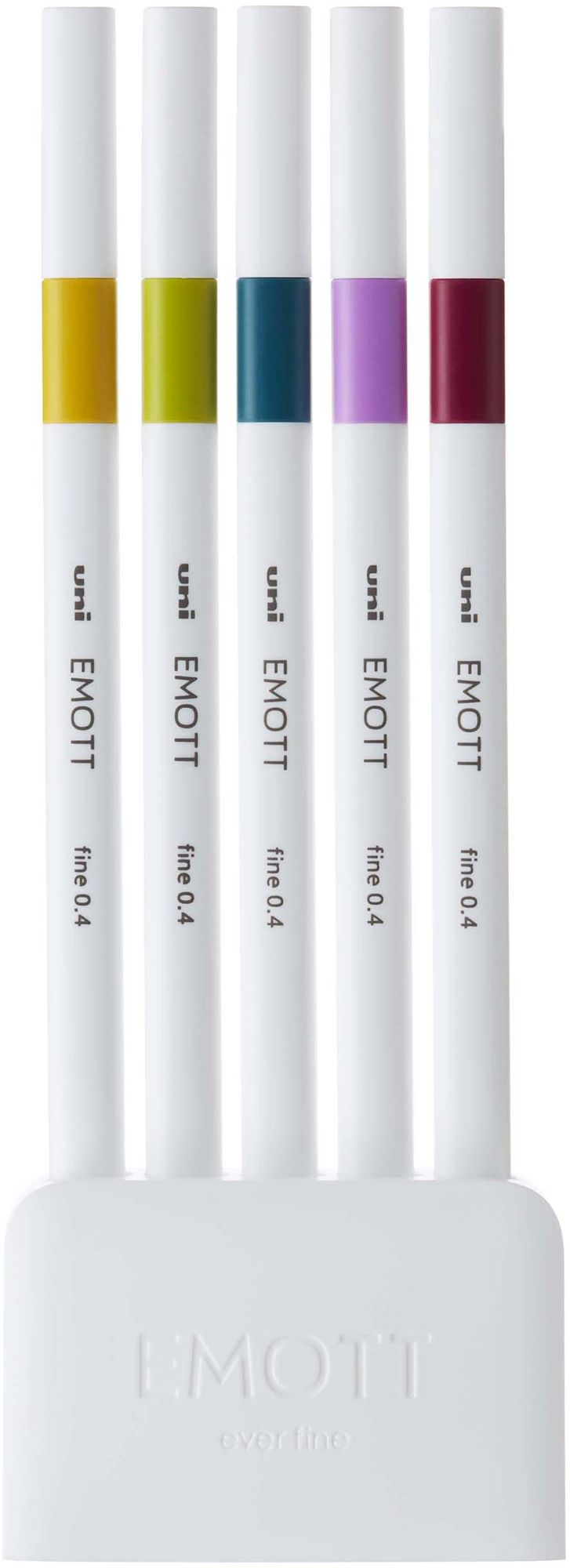 These ever fine Emott pens come in a pack of 5 colors! This Retro pack features a carefully curated color scheme. They have a durable tip and will not bleed or smear. Ink is water-based and water-resistant. This set also comes with a little holder so these pens can sit on your desk or work space.