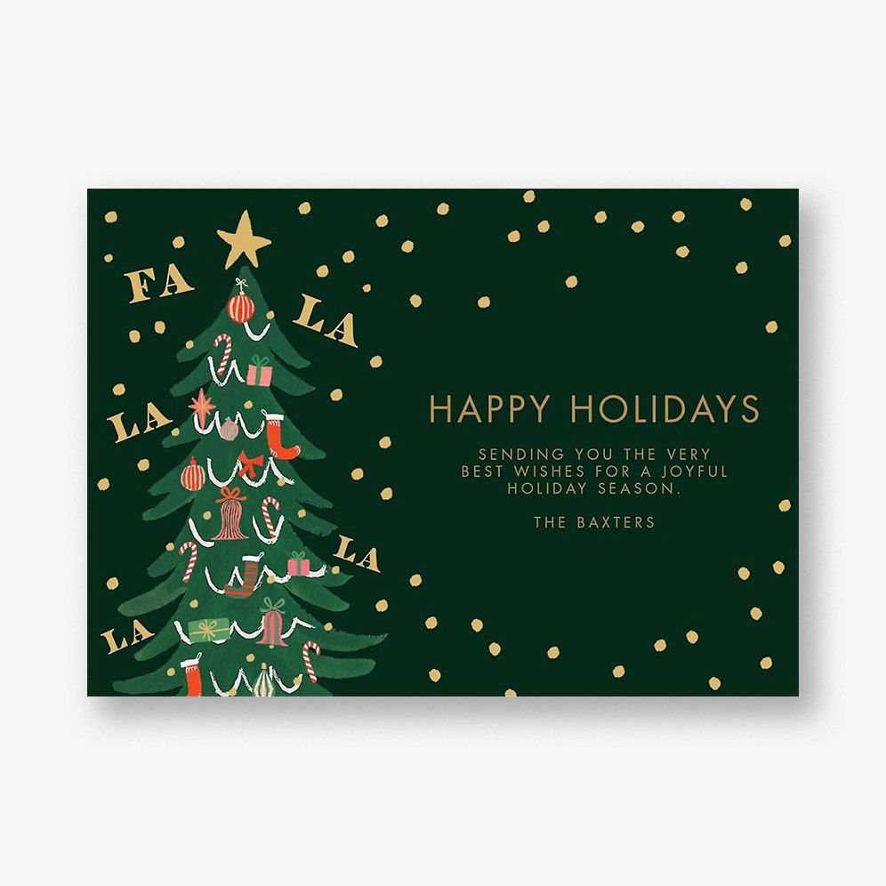 Share the holiday cheer with this bright card. a wonderful collaboration between classic holiday motifs and the artistic touch of Rifle Paper Company’s unique aesthetic. Printed on Mohawk 120.0 lb Superfine Ultra White. This paper is FSC certified. with 30% post consumer recycled content. and made using wind power.