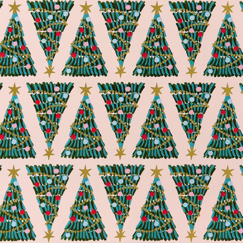 There is no such thing as too many Christmas trees. This wrap features repeating colorful trees. Add a gift tag. bow or ribbon to complete your beautifully wrapped gift! Roll measures 10′ x 30. Designed by Paper Source
