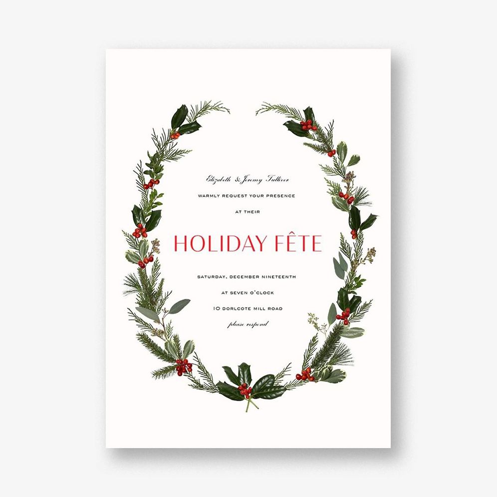 Classic florals bordering an invitation for celebration is what makes the holiday season that much more joyous. Invite those you love using this evergreen holiday card by Paperless Post.