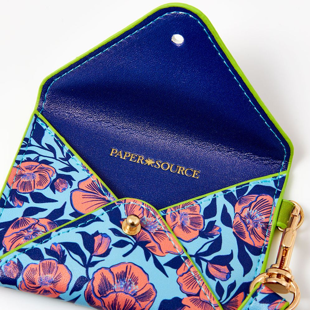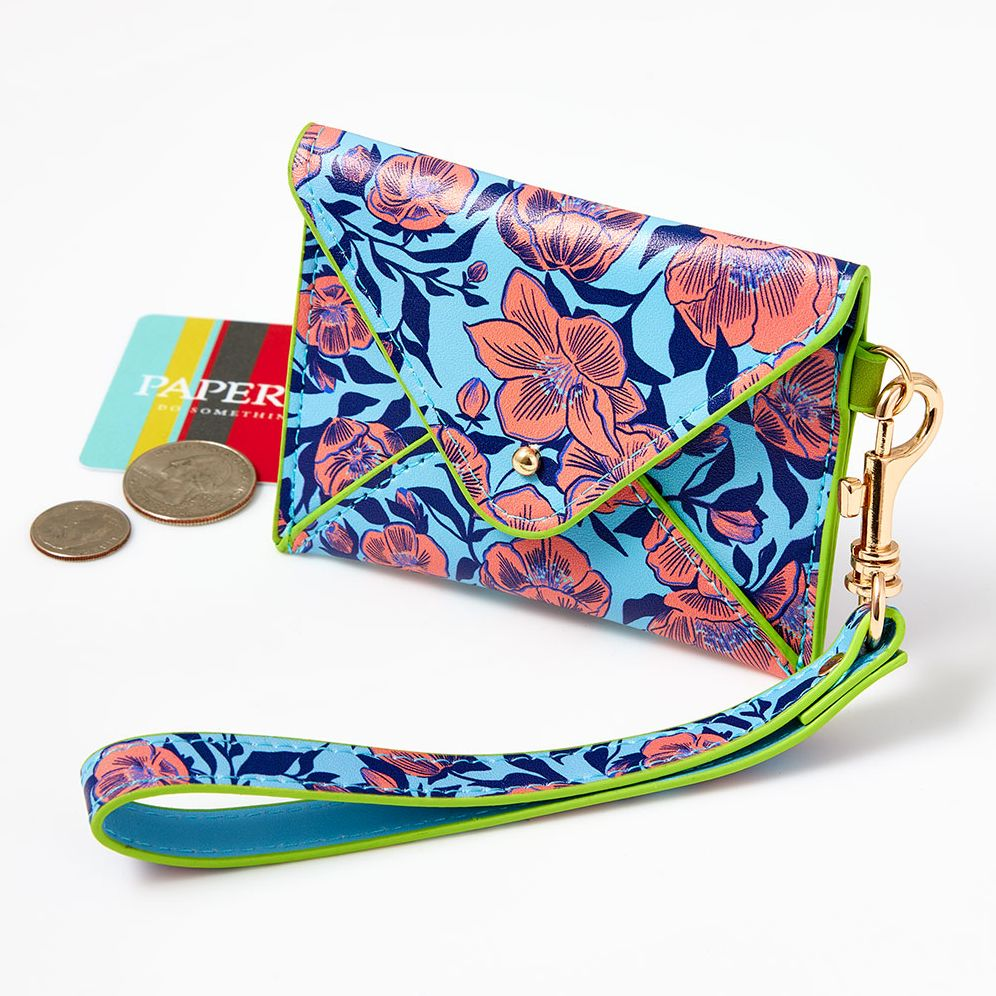 Floral Wristlet Wallet perfect for on-the-go! Put in your cards & cash. attach your lip gloss and you are good to go! Paper Source Designed