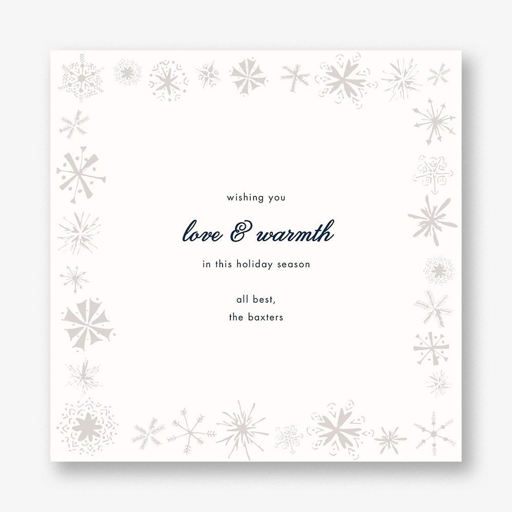Send a holiday greeting as unique as each snowflake adorning this elegant personalizable card. See photo options for the back of this card!