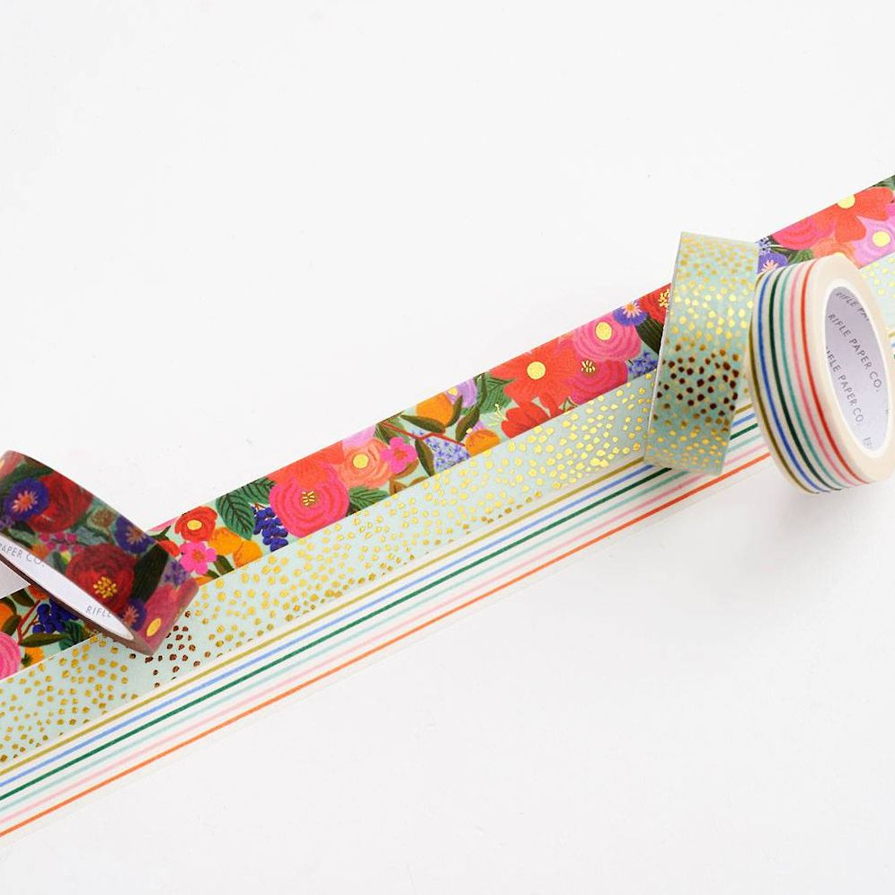 Spice up an envelope. tape your favorite inspirations. or add a decorative accent to wrapping with this set of illustrated washi tape in three coordinating patterns. By Rifle Paper Co.