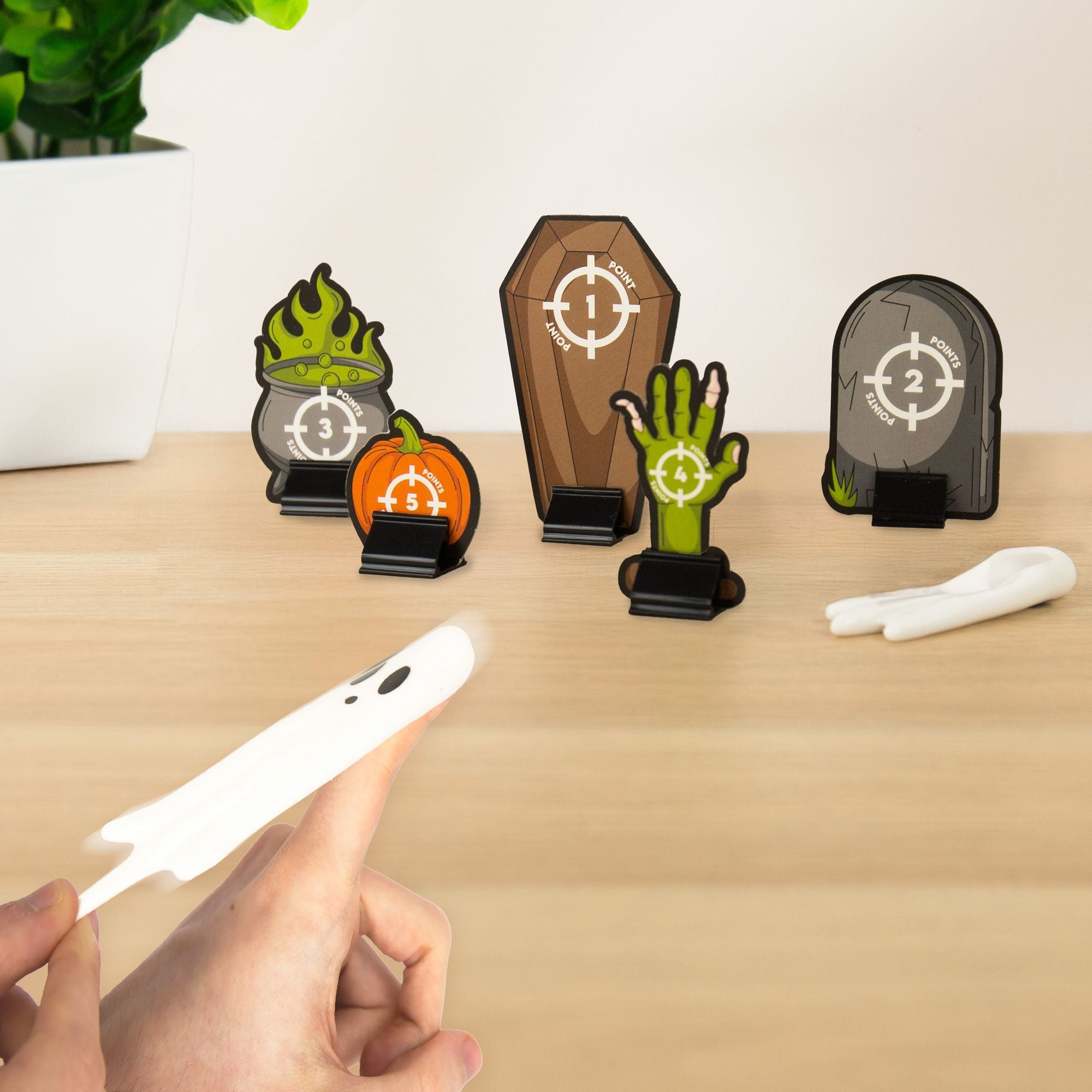 Aim. flick and haunt your way to victory! Test your ghostly precision by flicking these sticky ghosts at targets. Knock them over. rack up points and claim your title as the ultimate ghastly ghost slinger!